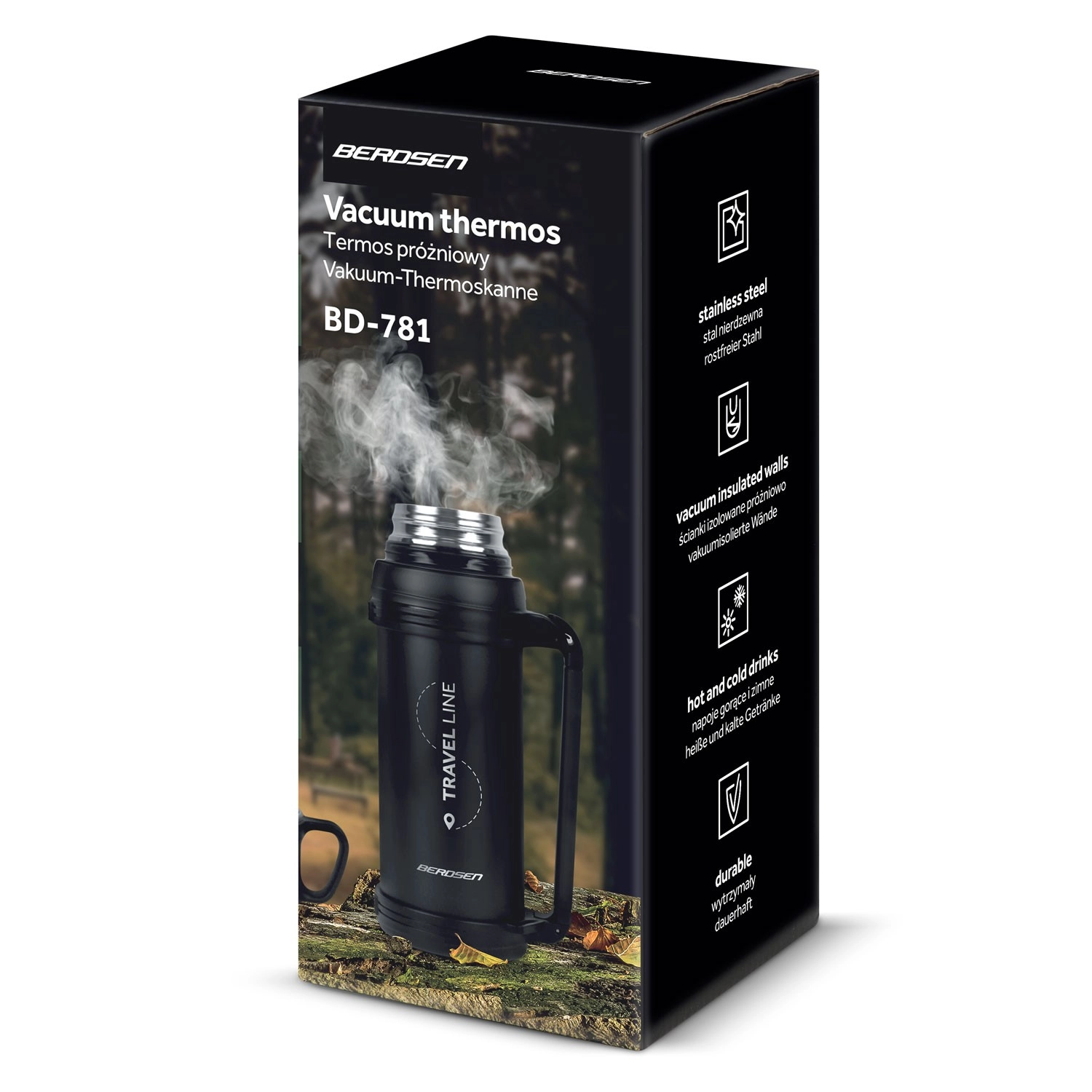 Podwójne ścianki ze stali nierdzewnej utrzymują napoje gorące do 12 godzin i zimne do 24 godzin – idealne na wycieczki, do pracy i zimowe przygody.