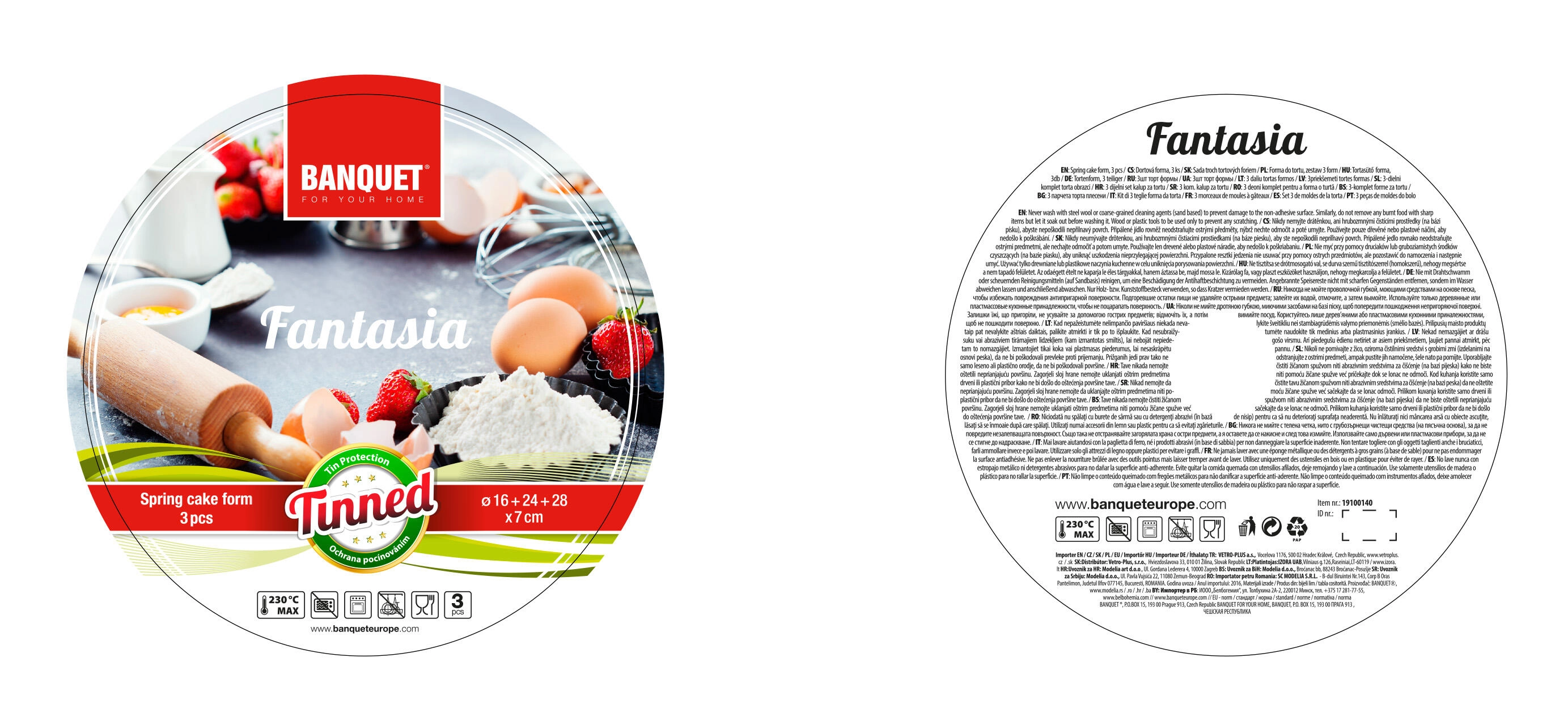 Dzięki temu uniwersalnemu zestawowi trzech tortownic typu springform FANTASIA przygotujesz małe i duże torty, tarty oraz słone quiche. Każda forma ma otwierany rant dla łatwego wyjmowania bez uszkodzenia spodu oraz ocynowaną powierzchnię dla równomiernego rozprowadzania ciepła i niezawodnego pieczenia.
