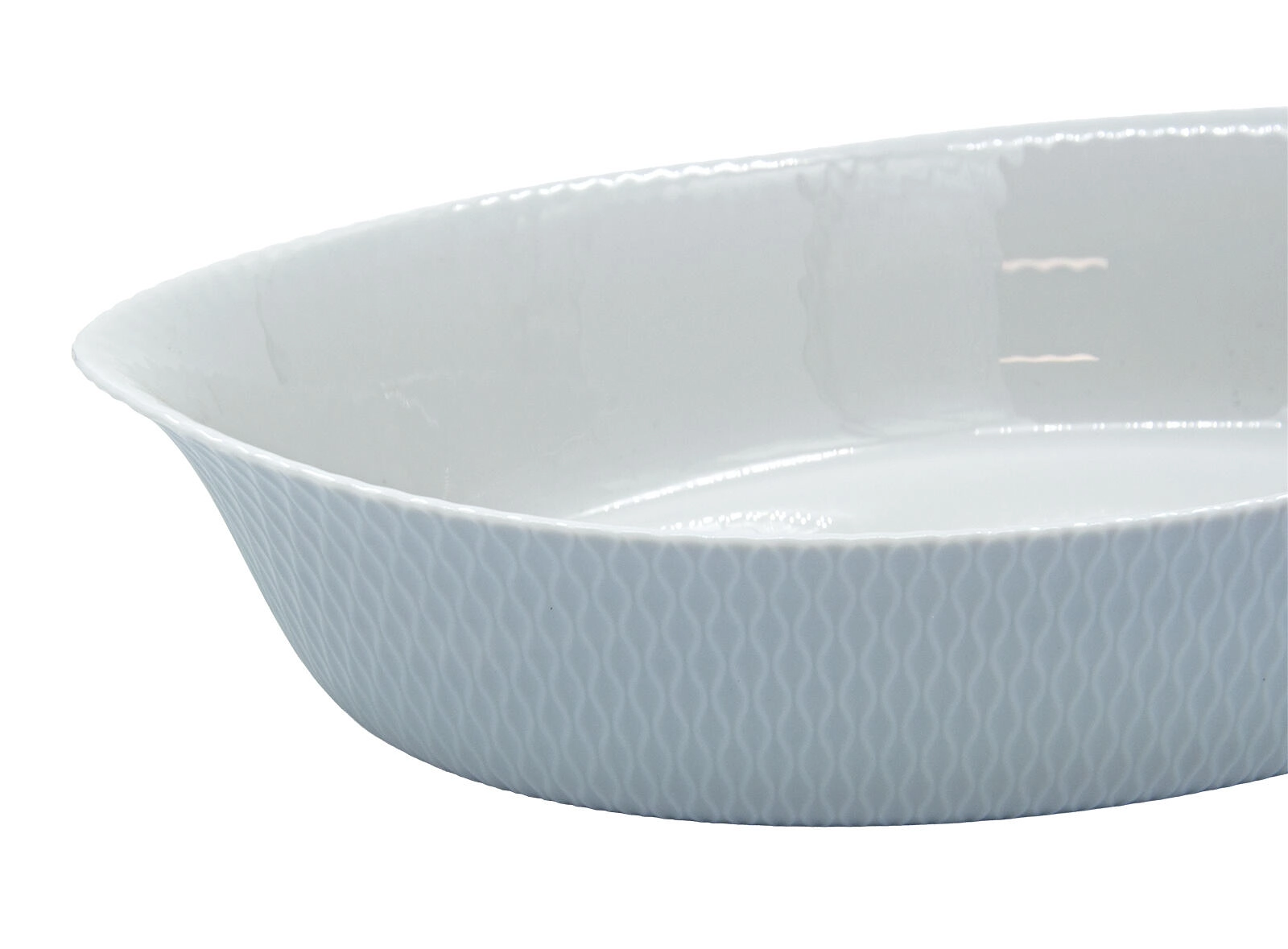 To owalne naczynie do zapiekania o wymiarach 32 × 20 × 7,4 cm łączy nowoczesny design z praktycznymi właściwościami. Teksturowana, falowana powierzchnia na zewnątrz zapewnia pewny uchwyt, a gładkie, lśniące wnętrze ułatwia czyszczenie i serwowanie. Ponadczasowy szary kolor doskonale pasuje do każdej kuchni.