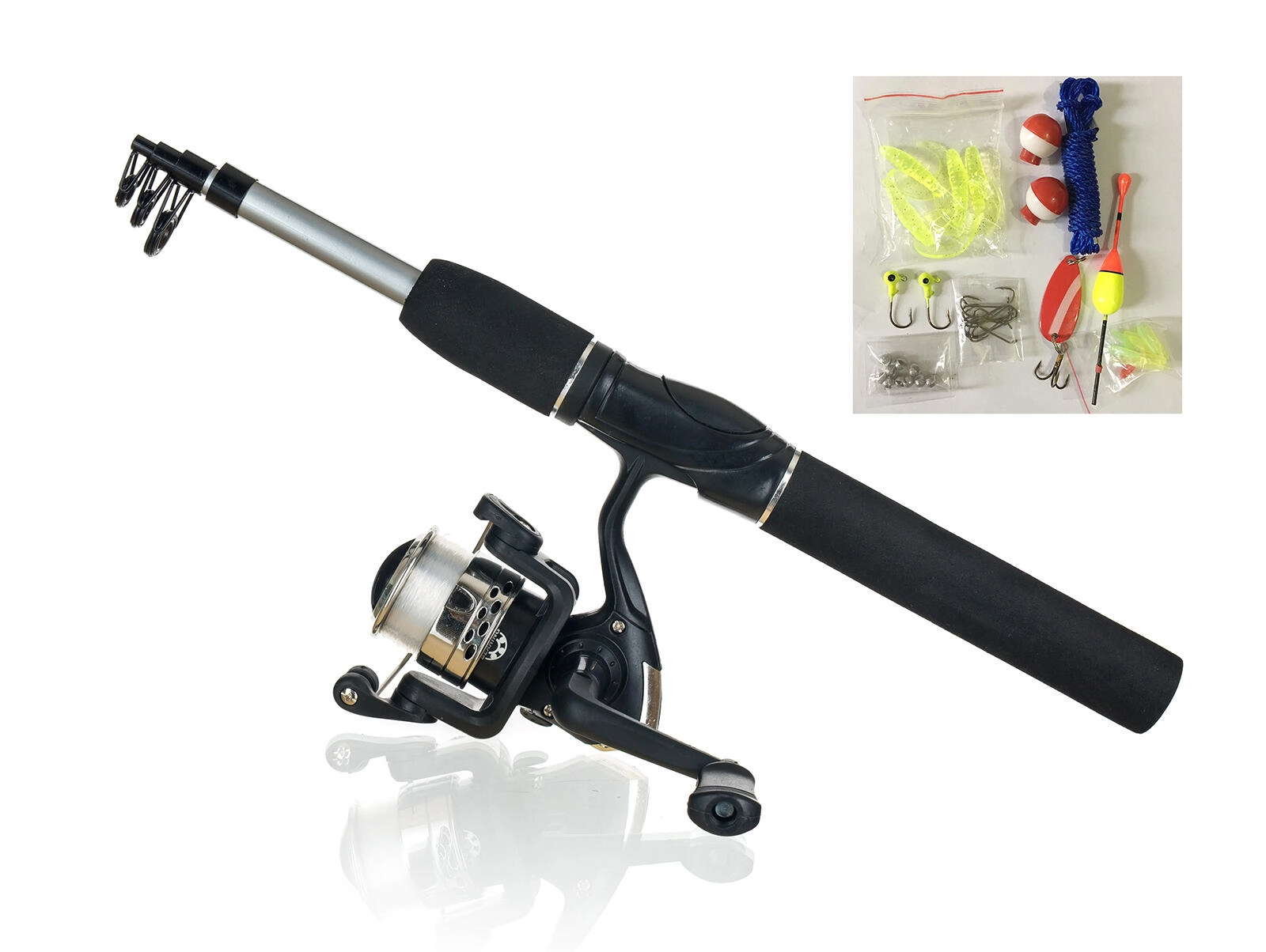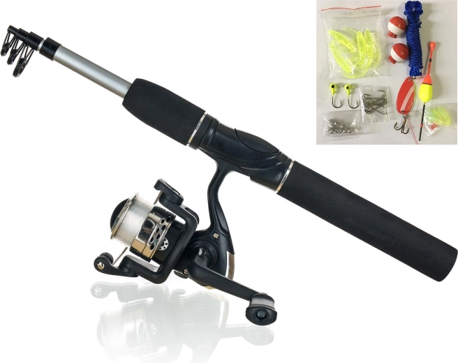 Teleskopowa wędka 180 cm z kołowrotkiem i akcesoriami
