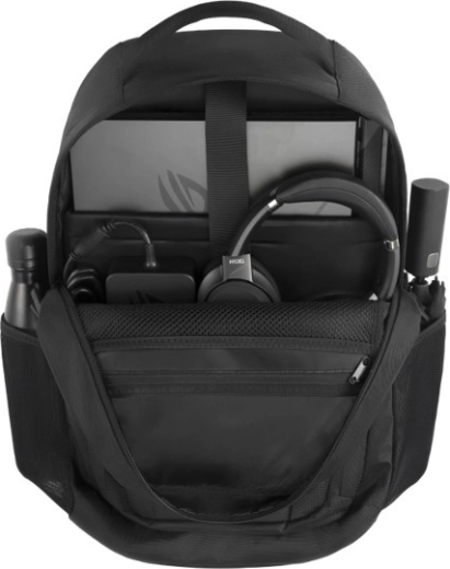 ROG Ranger BP2800 został zaprojektowany do komfortowego przenoszenia sprzętu gamingowego i codziennych rzeczy. Główna, usztywniona komora bezpiecznie chroni laptop 18", a dodatkowe sekcje i organizery utrzymują wszystko przejrzyście na swoim miejscu. Dwie boczne kieszenie bez trudu pomieszczą butelkę z wodą lub parasol – idealne do miasta i na krótkie wypady.