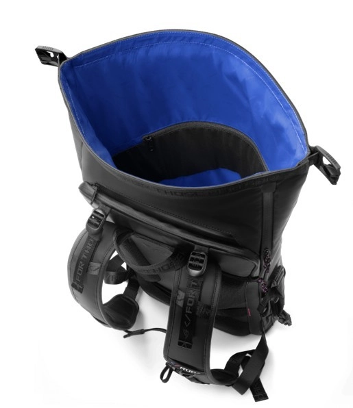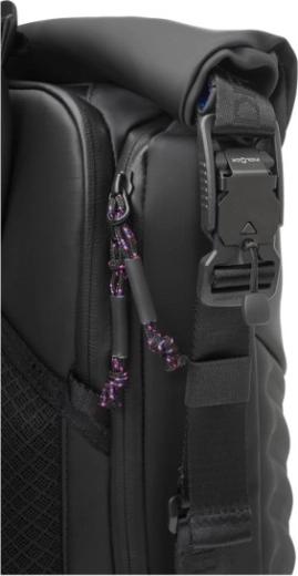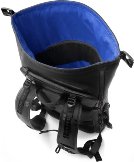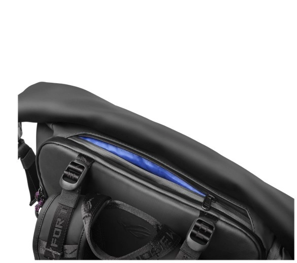ROG Slash 4.0 łączy sprytną organizację i wytrzymałość dla graczy oraz profesjonalistów w drodze. Oddzielna, wyściełana komora bezpiecznie pomieści laptop do 18", a kolejne segmenty mieszczą klawiaturę, mysz, pad, słuchawki i butelkę na wodę. Zapięcie roll‑top z boczną klamrą i zamkami pozwala szybko zwiększyć pojemność i zapewnia łatwy dostęp.