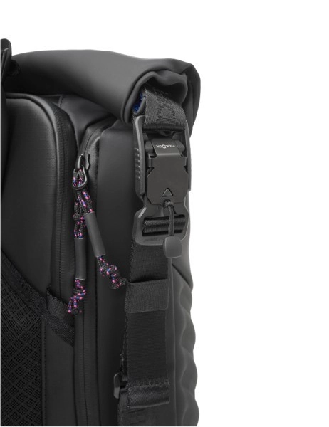 Rozszerzalny roll‑top z boczną klamrą, boczne zamki dla szybkiego dostępu oraz wyściełane szelki z paskiem piersiowym zapewniają komfort przez cały dzień.