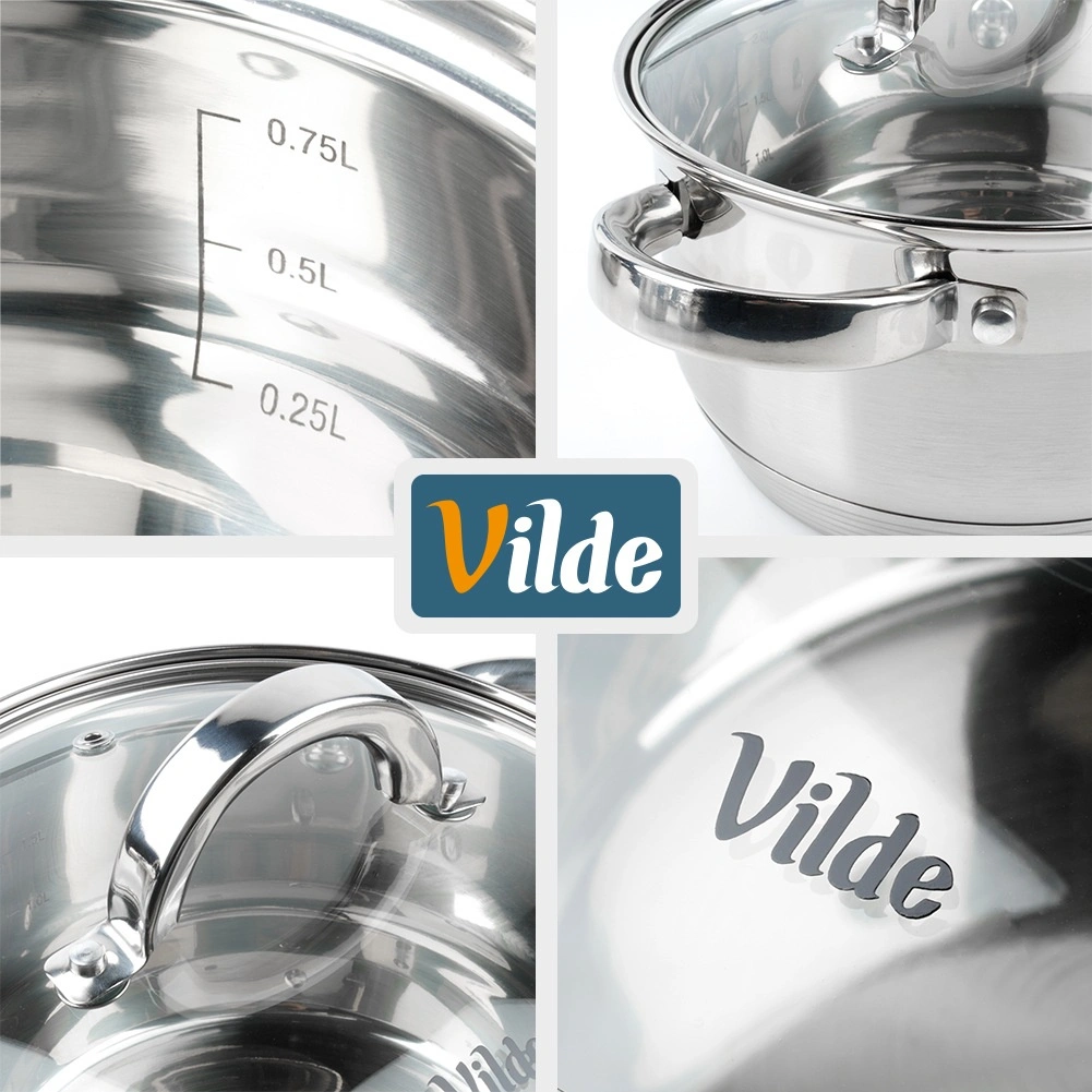 Praktyczny garnek z wysokiej jakości stali nierdzewnej ze szklaną pokrywką to świetny wybór do codziennego gotowania mniejszych porcji – od jajek, sosów i kasz po podgrzewanie zup czy roztapianie masła i czekolady. Półmatowe wykończenie nadaje elegancki wygląd, a akutermiczne dno „Maximum Power” szybko i równomiernie się nagrzewa, oszczędzając energię.