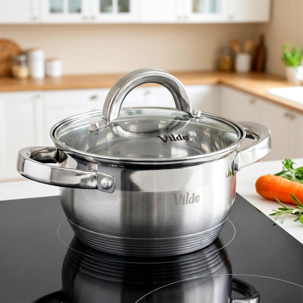 Nierdzewny garnek ze szklaną pokrywką INOXCELLENT 14 cm, 1 l