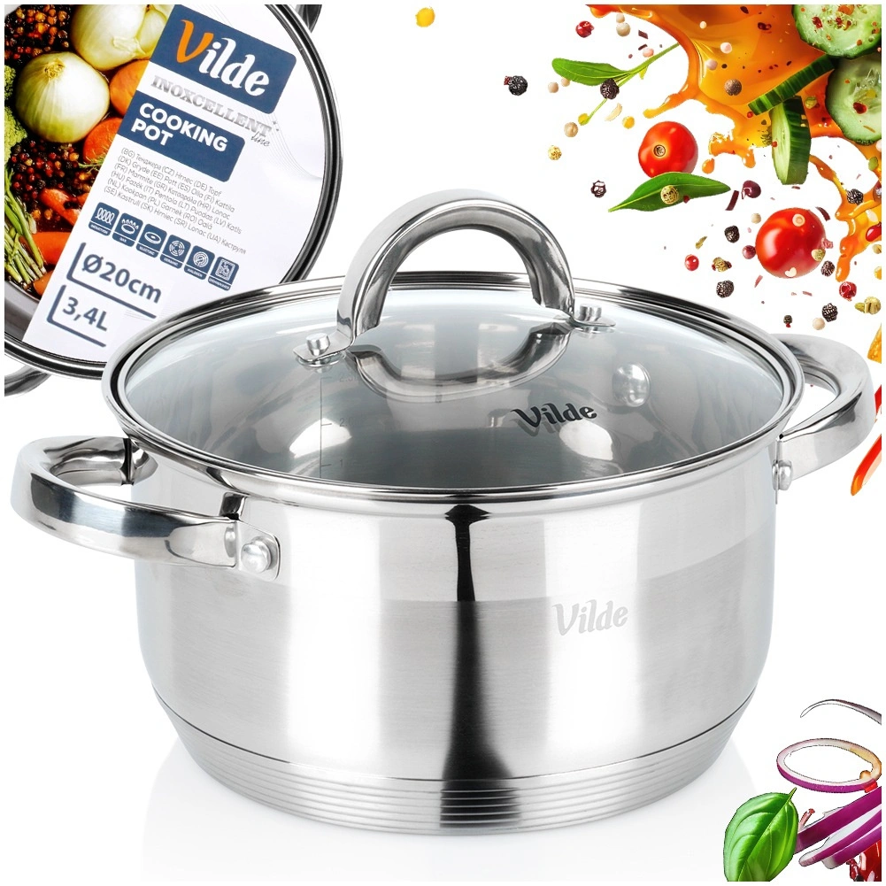 Garnek ze stali nierdzewnej ze szklaną pokrywką 20 cm, 3,4 l