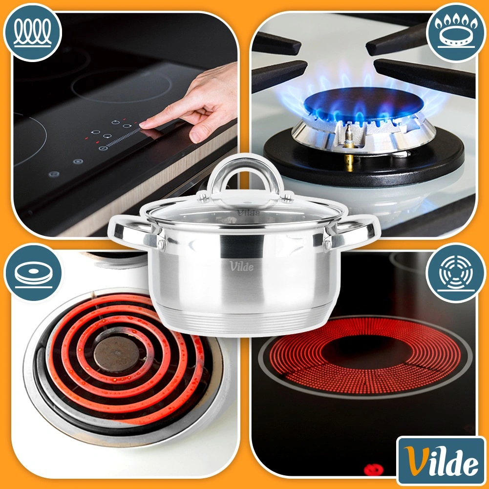 Garnek ze stali nierdzewnej jest kompatybilny z kuchenkami gazowymi, elektrycznymi, ceramicznymi, halogenowymi oraz indukcyjnymi.