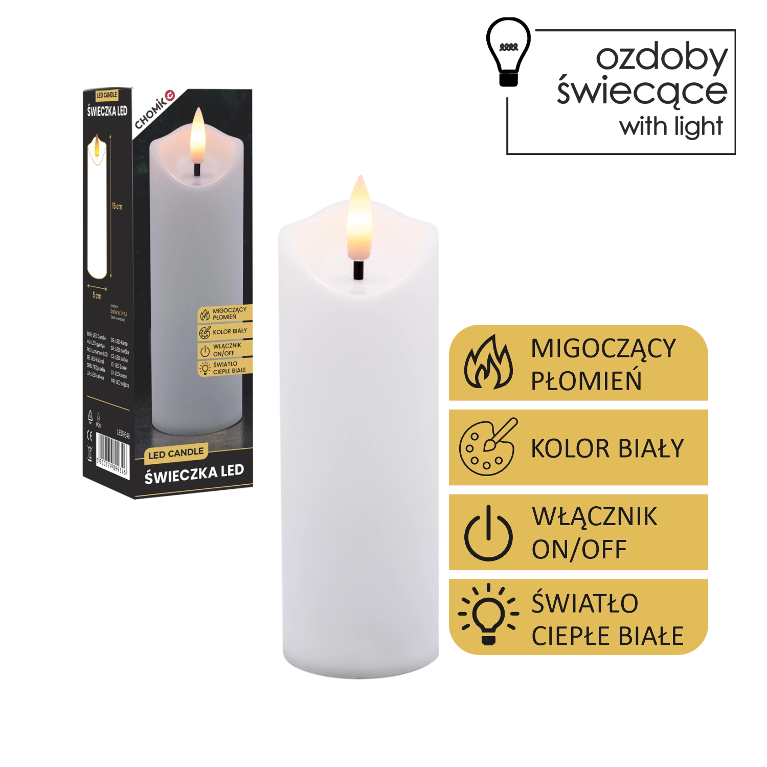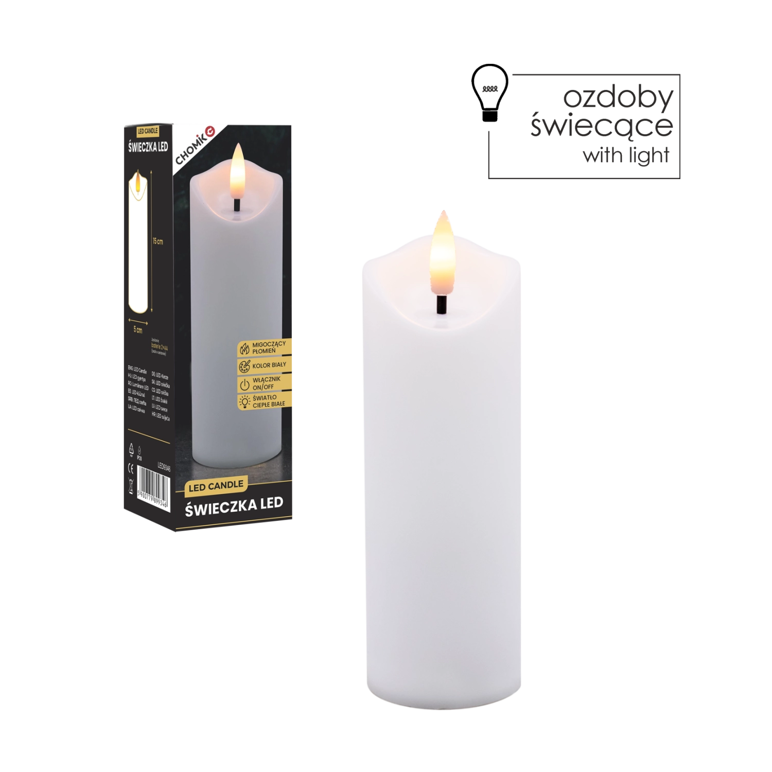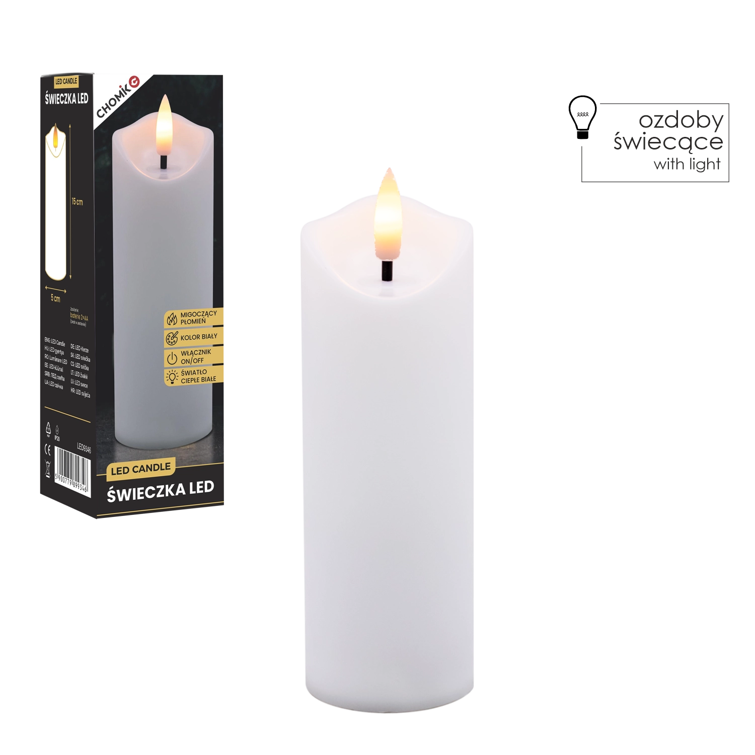 Biała świeca LED 5 × 15 cm z migoczącym płomieniem