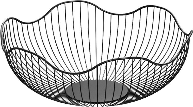 Ta minimalistyczna druciana misa idealnie sprawdzi się do serwowania i przechowywania owoców, pieczywa czy dekoracji. Czarne malowanie proszkowe ma ponadczasowy charakter i łatwo dopasujesz je zarówno do nowoczesnych, jak i klasycznych wnętrz. Otwarty design wspiera przepływ powietrza, co pomaga utrzymać owoce świeże i przejrzyście uporządkowane.