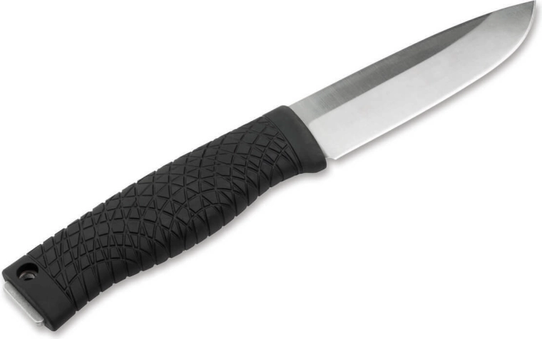 Szerokie ostrze z wysokowydajnej stali narzędziowej CPM-3V z gładką krawędzią tnącą wyróżnia się znakomitą odpornością na zużycie i doskonałą udarnością. Jednostronna garda chroni palce przy mocnych cięciach, a ergonomiczna rękojeść z TPE o teksturowanej powierzchni trzyma się pewnie nawet w mokrych dłoniach.