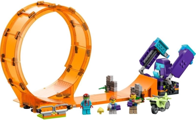 Wejdź do świata kaskaderów z LEGO City Małpią kaskaderską pętlą. Dominująca olbrzymia pętla, funkcjonalna rampa i mechaniczny szympans tworzą scenę dla ekscytujących popisów. Motocykl z napędem bezwładnościowym rozpędza się błyskawicznie i radzi sobie nawet z wymagającymi przewrotami przez pętlę.