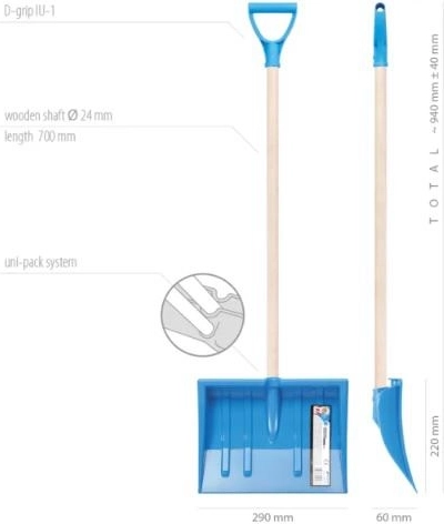 - Wytrzymała plastikowa klinga oraz drewniany trzonek dla długiej żywotności