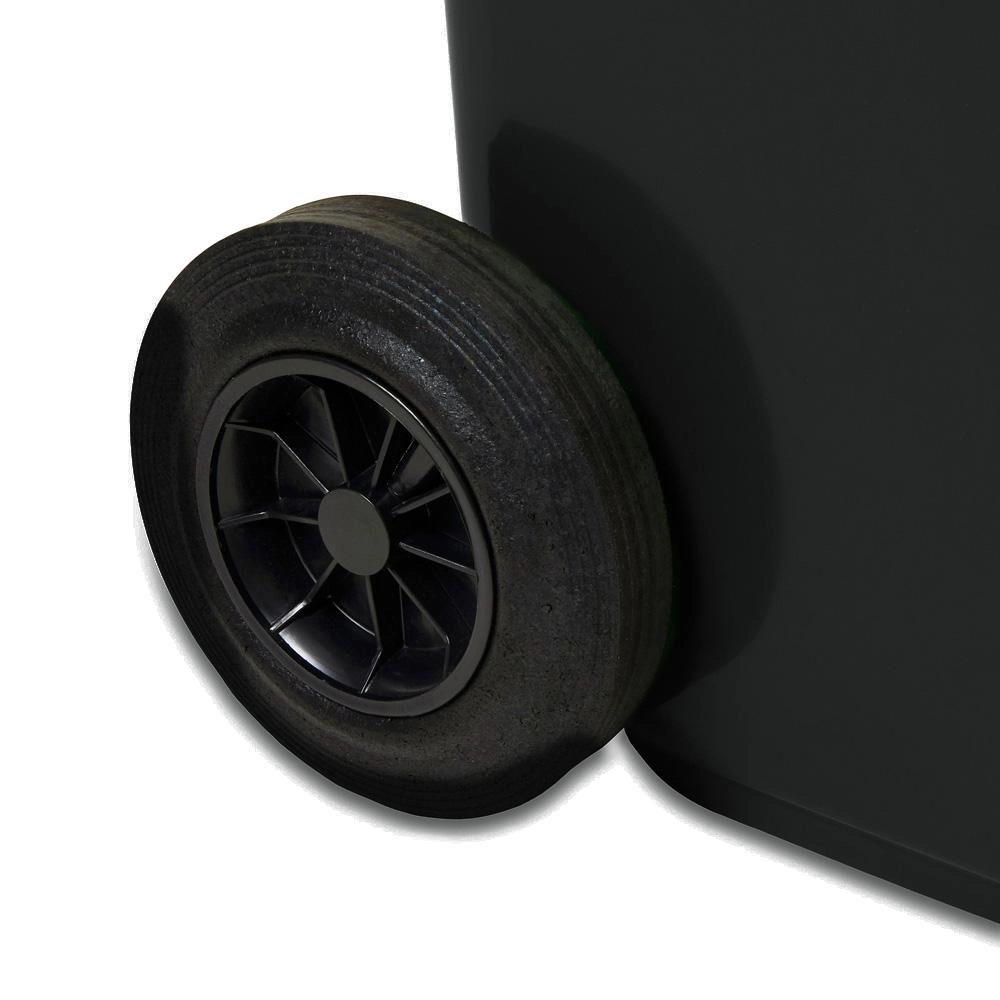 Ten czarny plastikowy kosz na śmieci o pojemności 120 litrów to idealny wybór dla gospodarstw domowych, firm i zakładów. Dzięki niskiej masie, ergonomicznym bocznym uchwytom oraz dwóm solidnym kołom pojemnikiem łatwo manewrować nawet przy pełnym załadunku. Solidna pokrywa pomaga ograniczyć zapachy i zapobiega dostępowi szkodników.