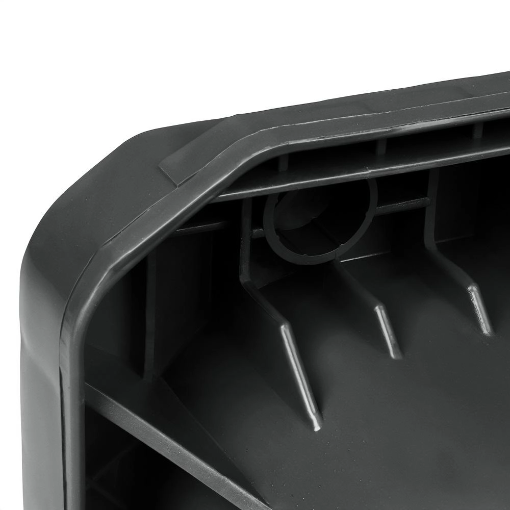 Maswne żebrowanie i wzmocnione naroża zwiększają nośność oraz odporność na uderzenia i długotrwałe użytkowanie na zewnątrz.