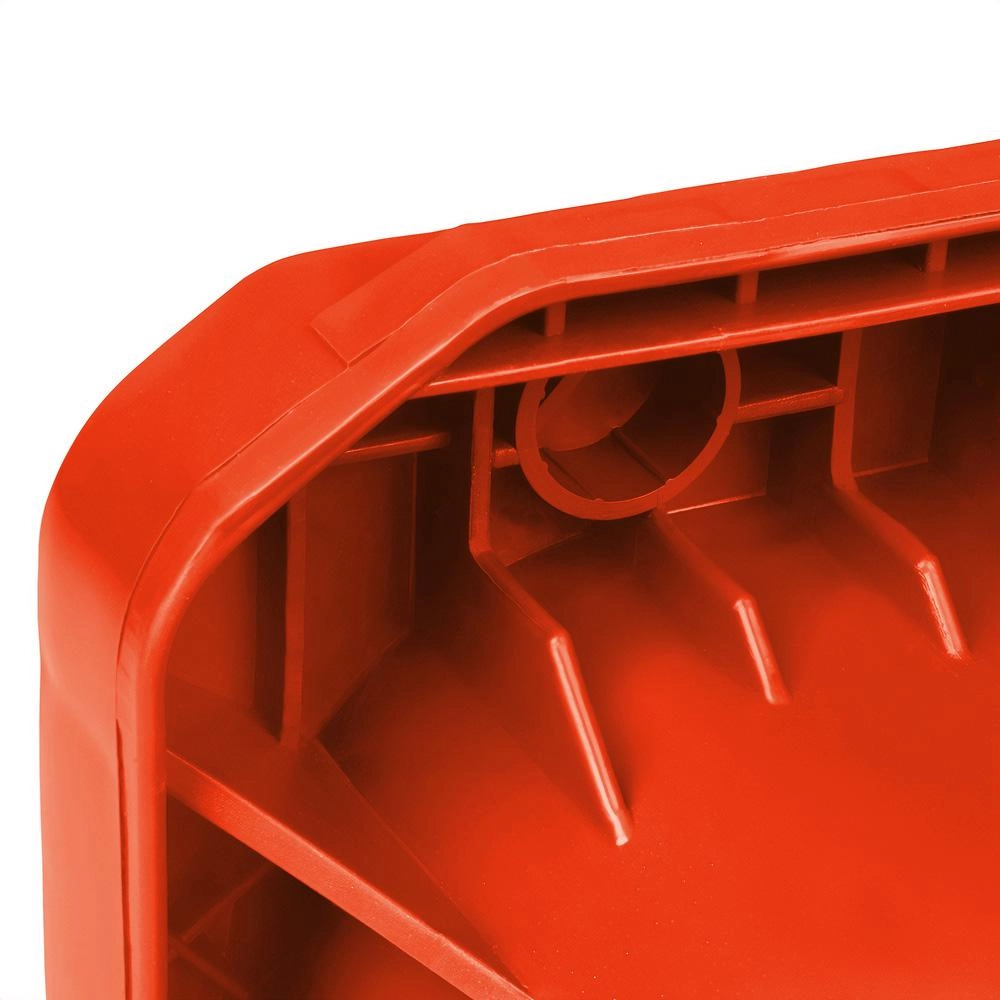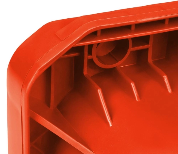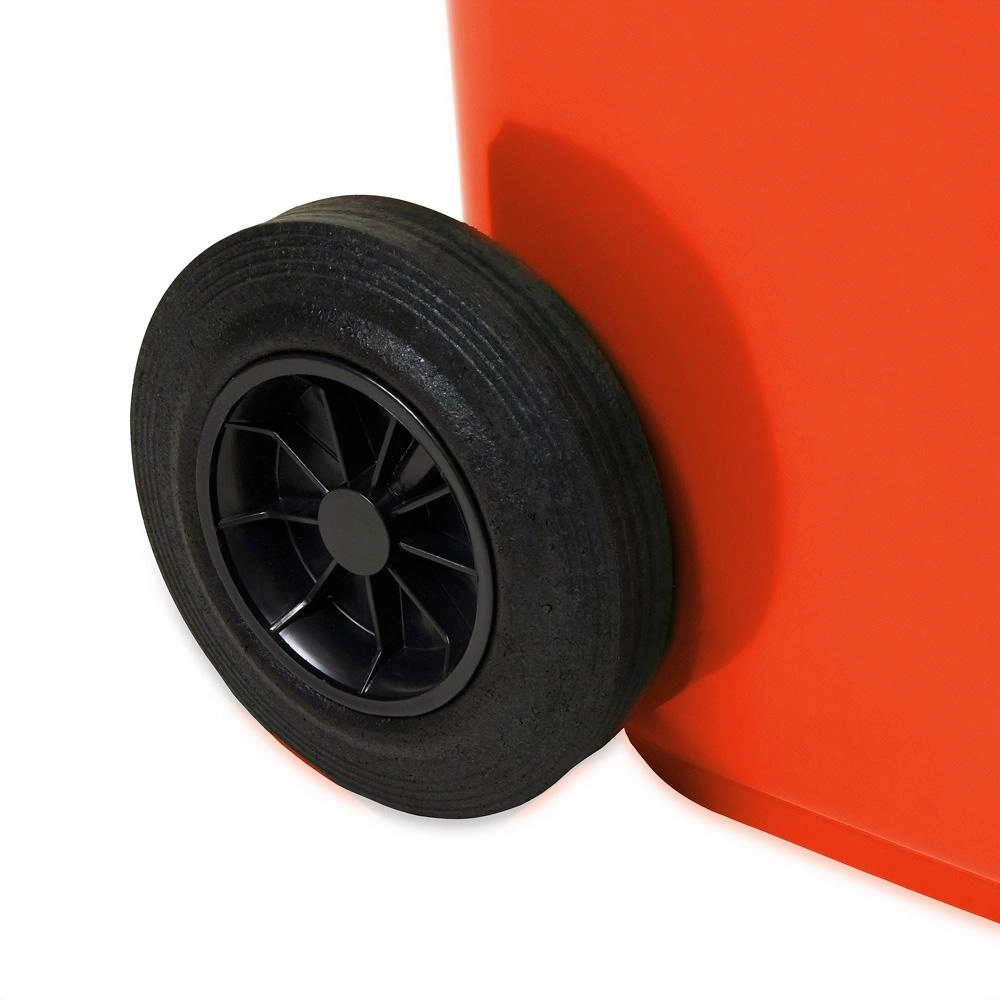 Dzięki standardowym wymiarom pojemnik jest kompatybilny z większością systemów wywozu. Gładkie wewnętrzne ścianki ułatwiają czyszczenie i utrzymanie wysokiego poziomu higieny. Czerwone wykonanie umożliwia łatwe oznaczanie odpadów kolorami zgodnie z wewnętrznymi zasadami lub przepisami gminnymi.