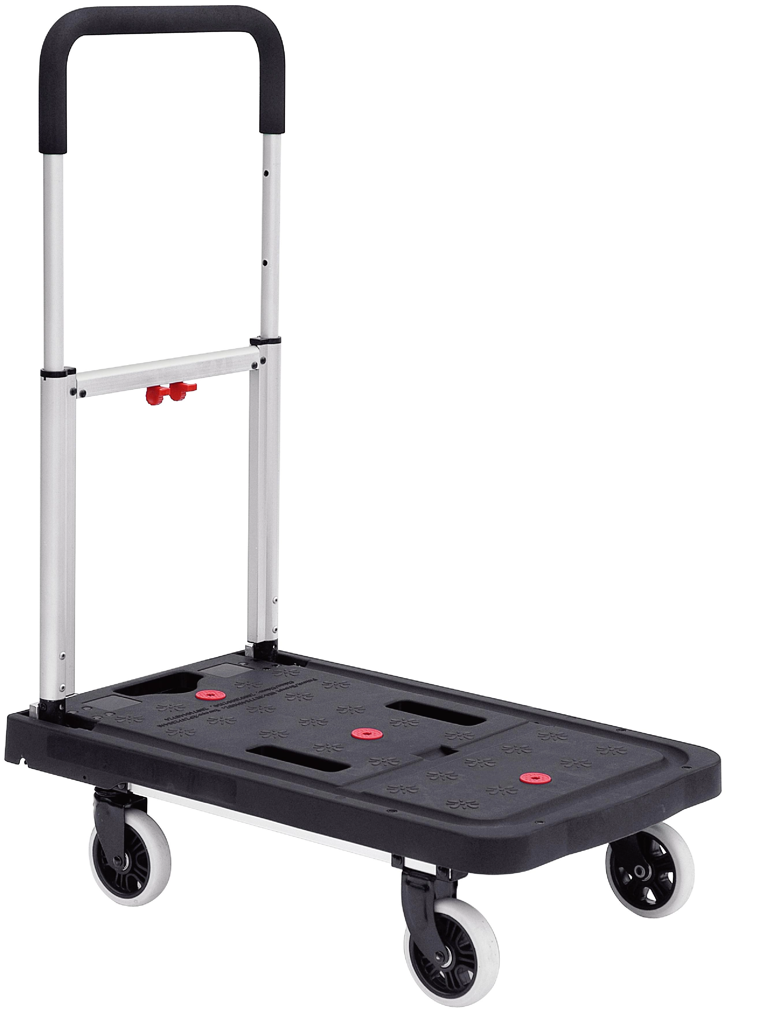 Ułatw sobie transport materiałów i paczek dzięki temu niezawodnemu składanemu wózkowi. Kompaktowa konstrukcja umożliwia całkowite złożenie do platformy, dzięki czemu bez trudu schowasz go do bagażnika auta, szafy lub regału. Dzięki teleskopowej rączce z trzema regulowanymi pozycjami dopasujesz wysokość dla maksymalnego komfortu.