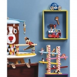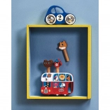 Niebieski samochodzik Vilac wykonany jest z lakierowanego drewna, co zapewnia jego trwałość i elegancki wygląd. Ma metalowe, gumowane koła, które gwarantują płynną i cichą jazdę. Dzięki specjalnemu rozwiązaniu osi samochodzik potrafi skręcać w lewo i w prawo, co dodaje zabawie dynamiki.