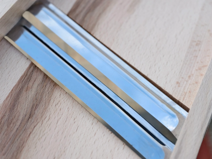 - Lite naturalne drewno, stal nierdzewna (noże)