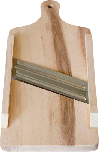 Tradycyjna drewniana szatkownica do kapusty o wymiarach 41 × 16 cm oferuje solidną konstrukcję z litego drewna oraz 2 ostre noże ze stali nierdzewnej do szybkiego, precyzyjnego i równomiernego szatkowania. Doskonała do użytku domowego i mniejszych zastosowań profesjonalnych, łatwa w obsłudze i prosta w utrzymaniu.