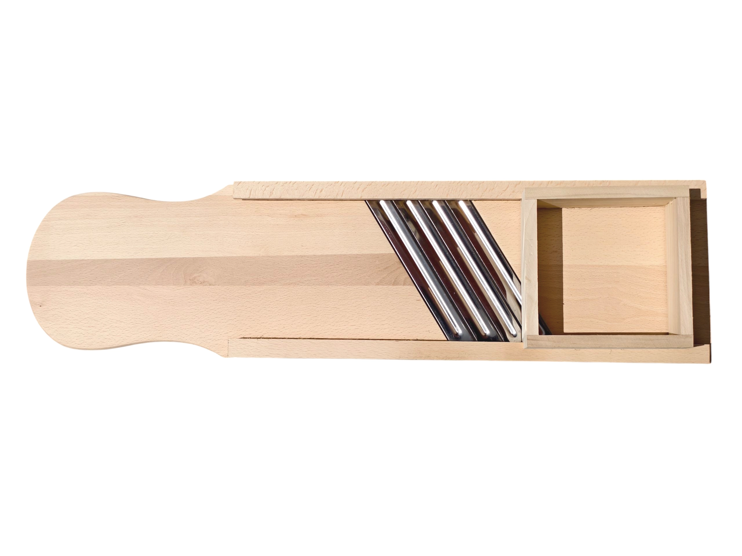 Drewniana szatkownica do kapusty 92 × 23 cm z szufladką, 4 noże