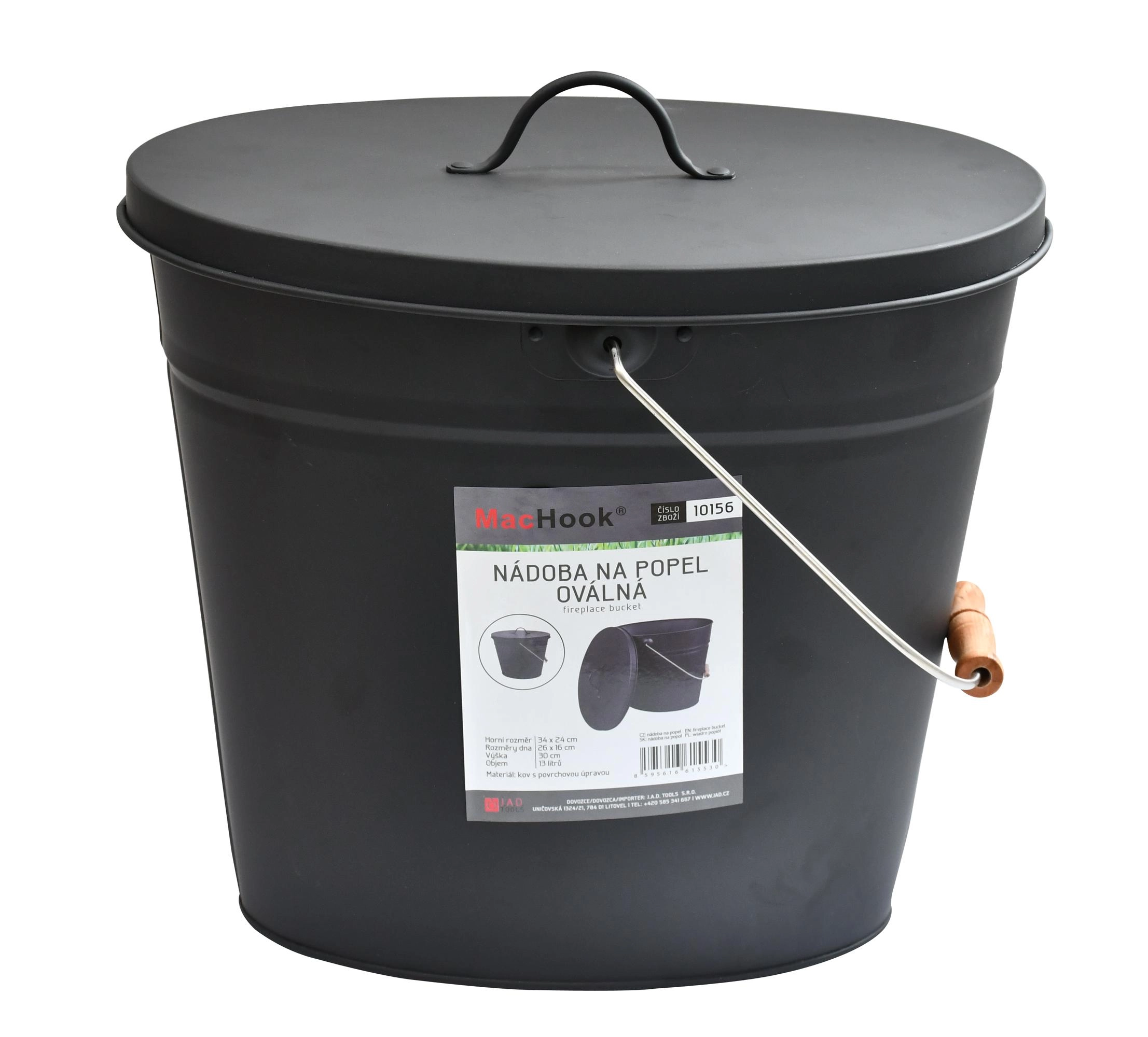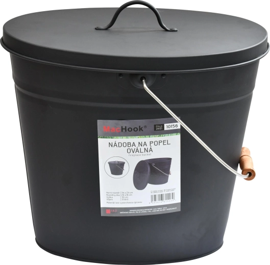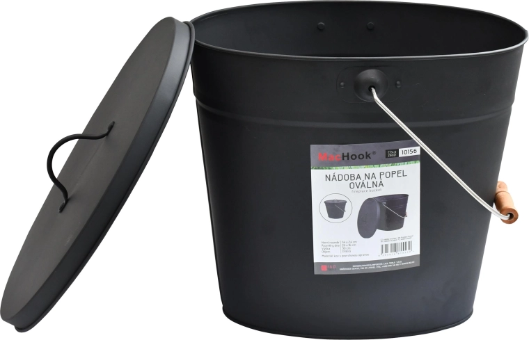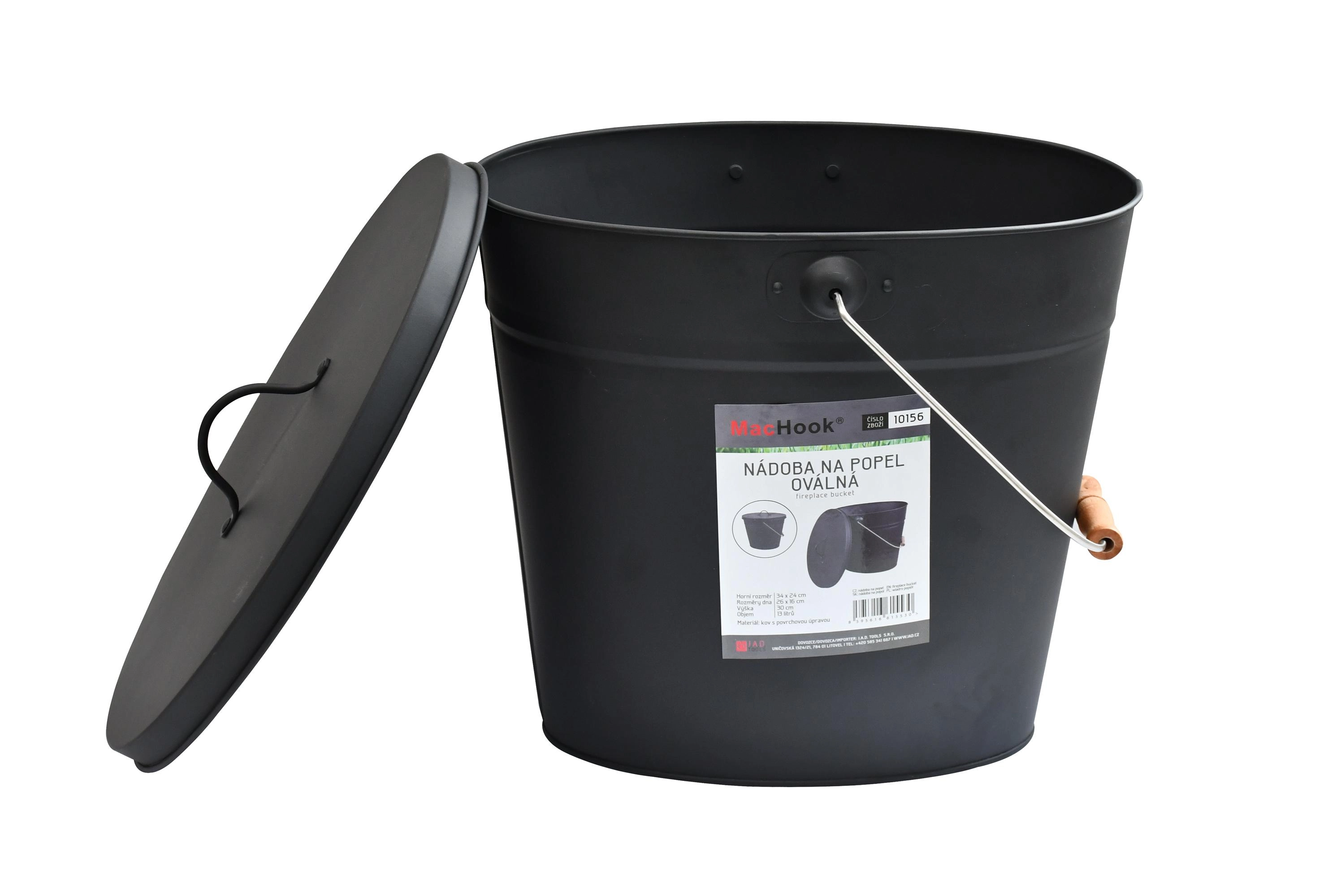 Praktyczny metalowy pojemnik na popiół o pojemności 13 litrów z owalnym kształtem i stabilnymi wymiarami do bezpiecznego przechowywania popiołu z kominków i pieców. Oferuje stabilne dno, dobrze dopasowaną pokrywę oraz wytrzymałą grubość materiału 0,32 mm dla długiej żywotności.