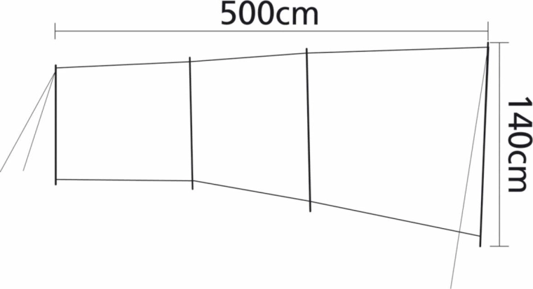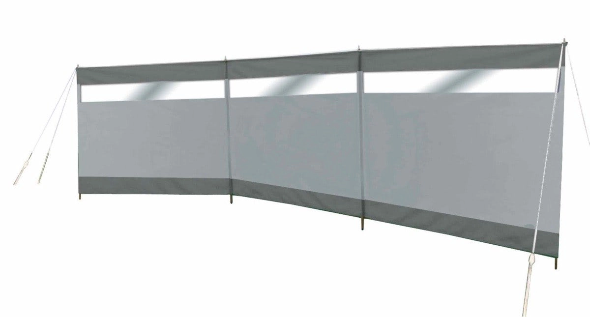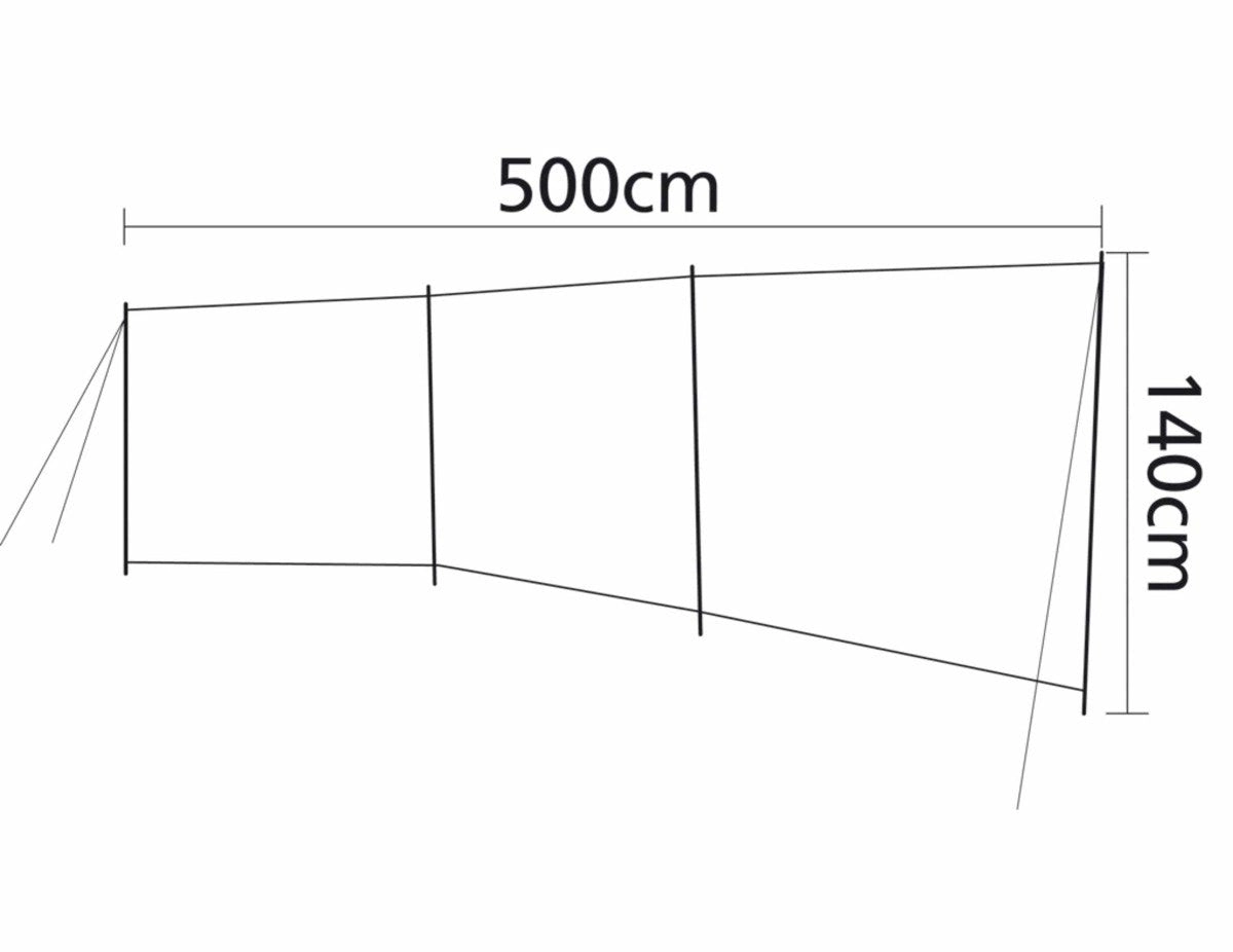 Stylowy i wytrzymały parawan plażowy o wymiarach 5 × 1,4 m zapewnia skuteczną ochronę przed wiatrem i słońcem oraz prywatność na plaży lub na kempingu. Trzyczęściowa konstrukcja z przezroczystym okienkiem, solidną ramą i górnym wzmocnieniem z PVC gwarantuje wysoką stabilność. W zestawie torba transportowa, śledzie i linki kotwiące.