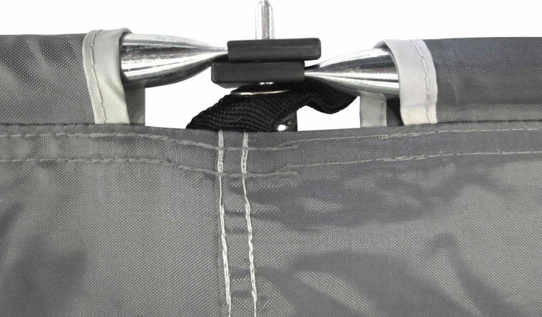 Górna listwa PVC, solidne słupki i wysokiej jakości łączenia utrzymują parawan stabilny nawet przy zmiennym wietrze – idealny na plażę i kemping.
