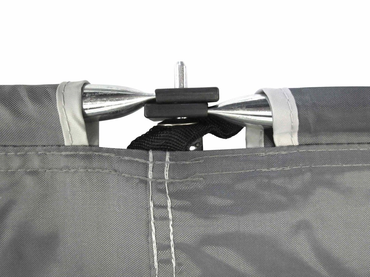 Parawan składa się do kompaktowej torby z uchwytem. W zestawie znajdują się śledzie i linki napinające do natychmiastowego zakotwienia.