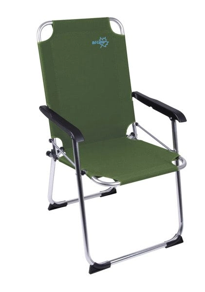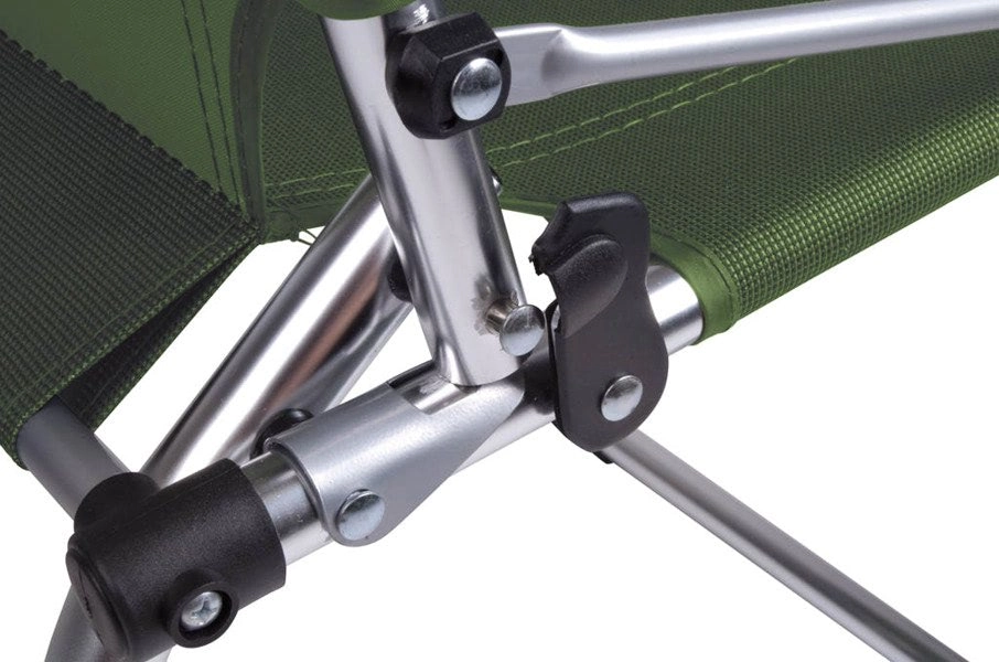 - Wytrzymałe materiały: rama z aluminium, siedzisko z poliestru 600D.