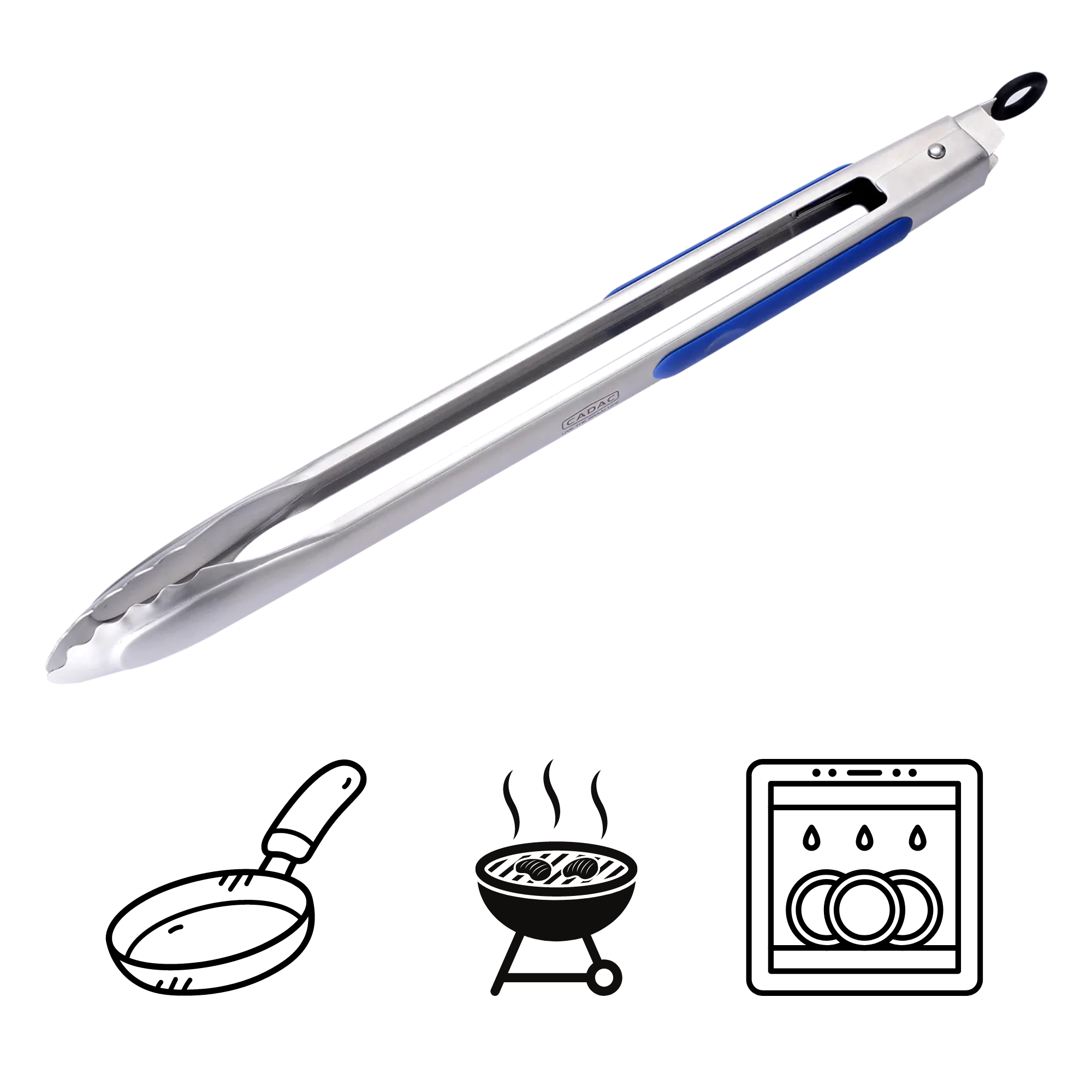 Szczypce można myć w zmywarce, a dzięki zawieszanemu zamkowi łatwo je zablokować, przechować lub powiesić.