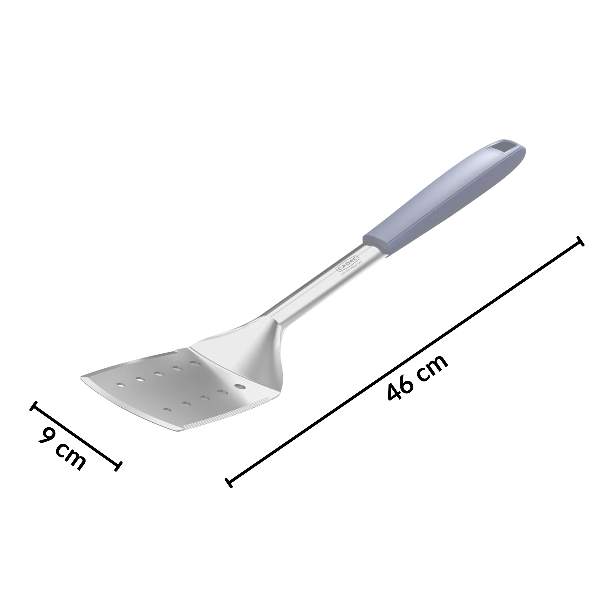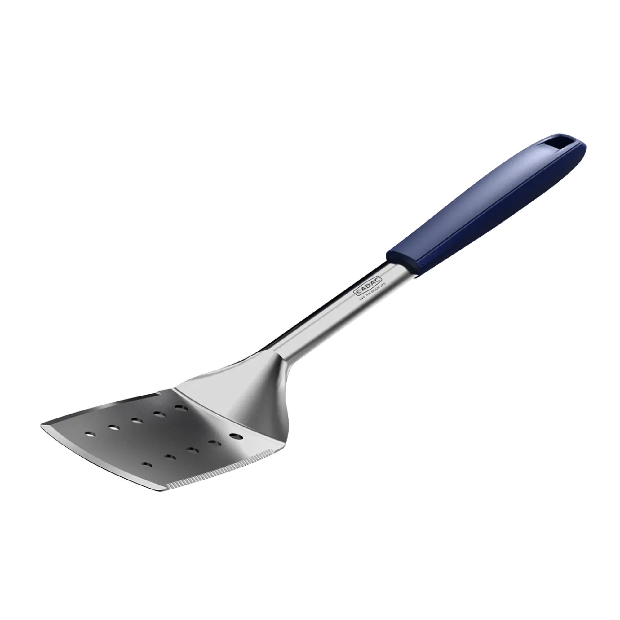 Profesjonalny zestaw do grillowania CADAC obejmuje solidną nierdzewną łopatkę i widelec z długimi, ergonomicznymi rękojeściami. Dzięki magnesom w rękojeściach łatwo przymocujesz je do większości metalowych powierzchni, a zintegrowane podpórki utrzymują część roboczą narzędzi nad blatem dla lepszej higieny. Wytrzymałe materiały znoszą wysokie temperatury i zapewniają wygodną oraz bezpieczną obsługę przy grillu i w kuchni.
