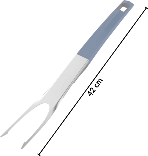 Dzięki długości 42 cm masz przy pracy przy grillu odpowiedni zasięg i lepszą kontrolę nad jedzeniem. Praktyczne oczko do zawieszania oszczędza miejsce i utrzymuje narzędzie zawsze pod ręką. Po grillowaniu wystarczy włożyć widelec do zmywarki i gotowe.