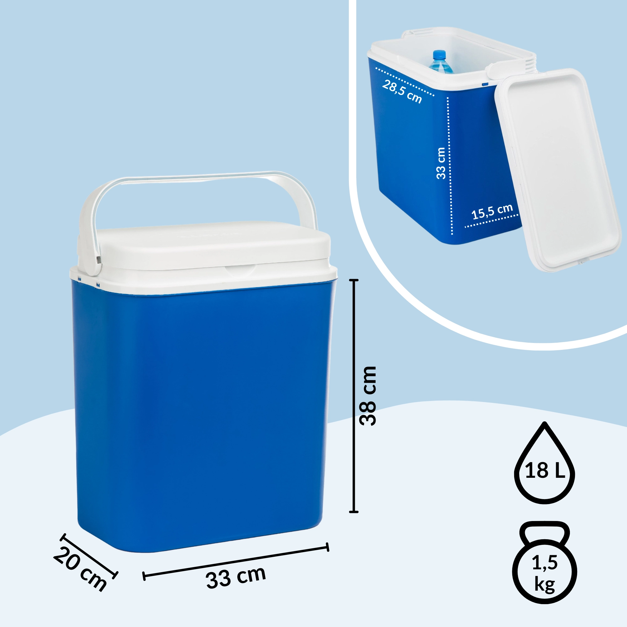 • 18 l pojemności na butelki, puszki i owoce