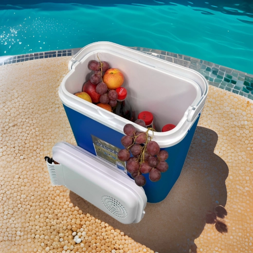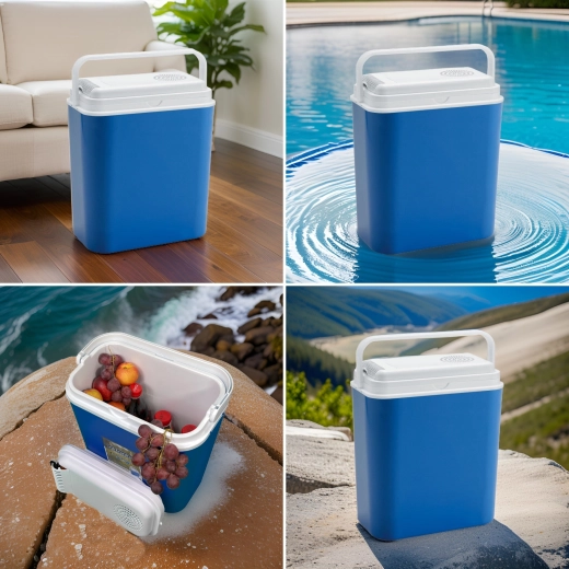 Model jest wyprodukowany w Europie, spełnia rygorystyczne normy kontaktu z żywnością, a lekkie i wytrzymałe wykonanie z polipropylenu ułatwia czyszczenie i codzienne użytkowanie. Eleganckie niebieskie korpus z białą pokrywą doskonale sprawdzi się na pikniku, plaży i kempingu.