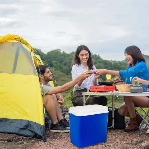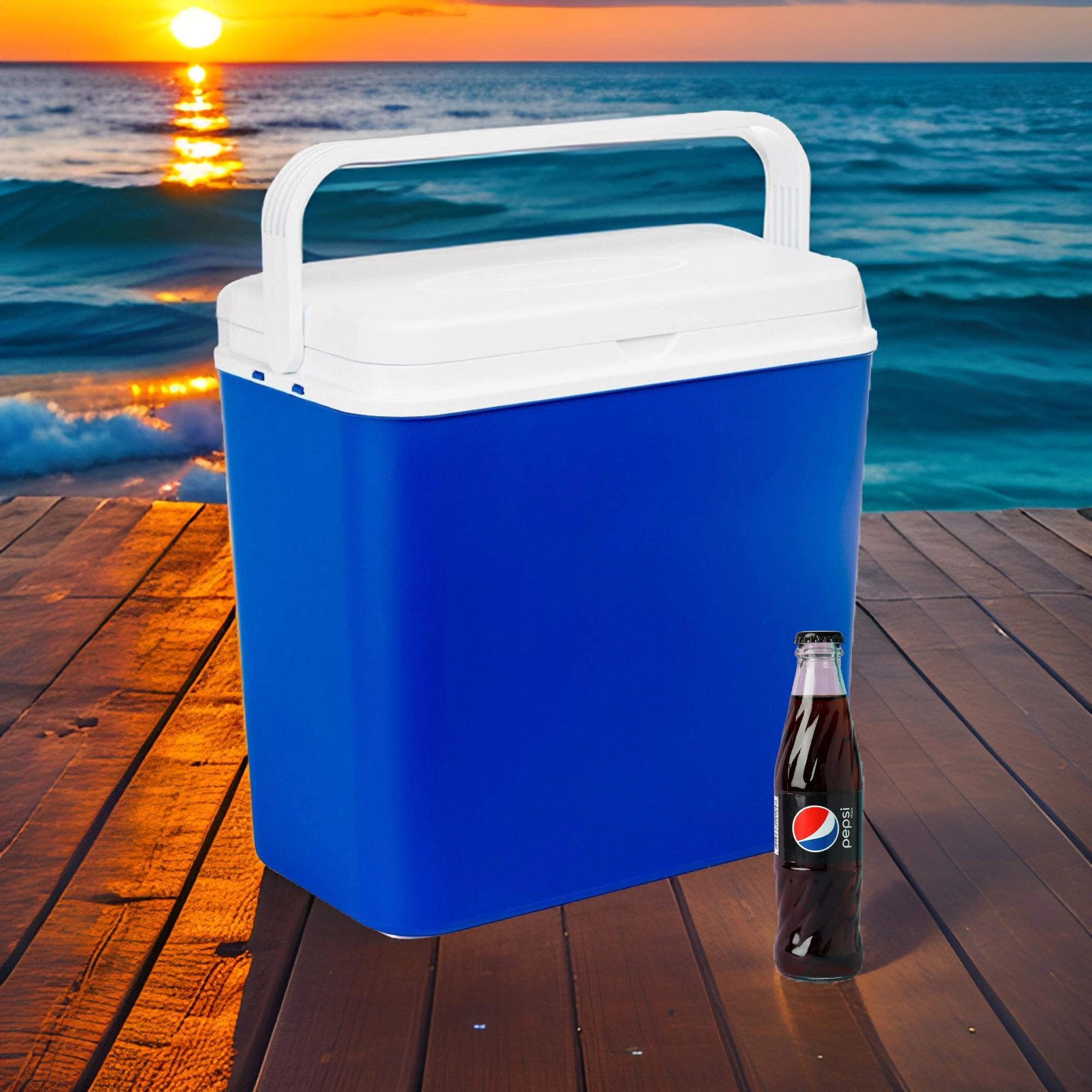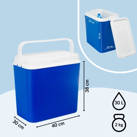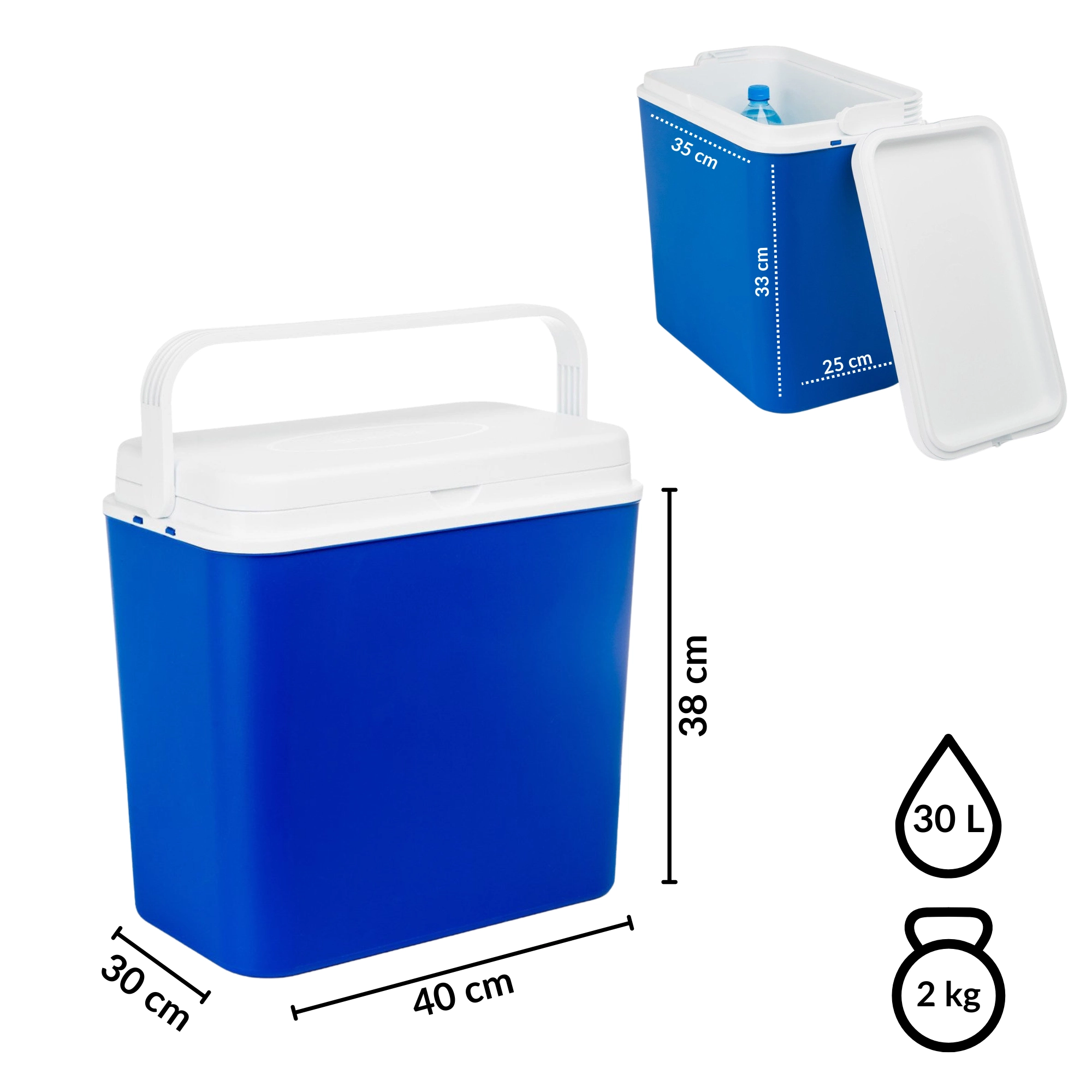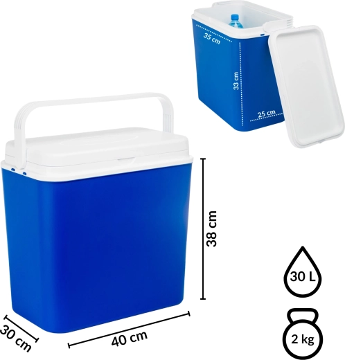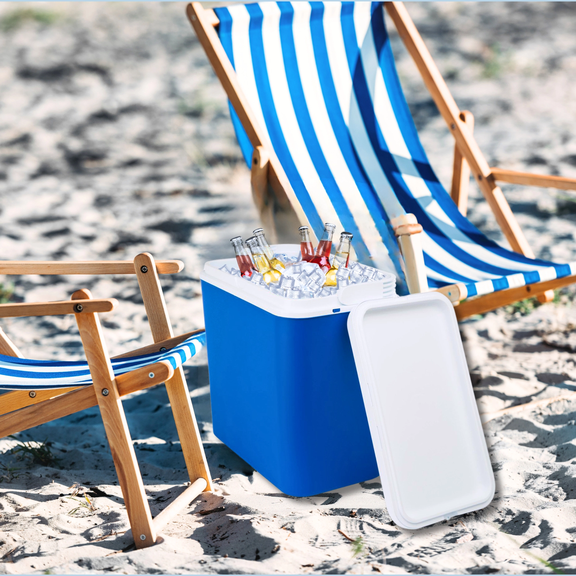 KAMAI ATLANTIC 30 l to niezawodna pasywna lodówka turystyczna na codzienne wypady i dłuższe podróże. Wystarczy włożyć wkłady chłodzące i ruszać w drogę – duża przestrzeń wewnętrzna pomieści butelki, puszki oraz świeże owoce, a zaawansowana izolacja utrzyma niską temperaturę przez długi czas. Eleganckie niebieskie wykończenie z białą pokrywą sprawdzi się na plaży, na kempingu i w ogrodzie.