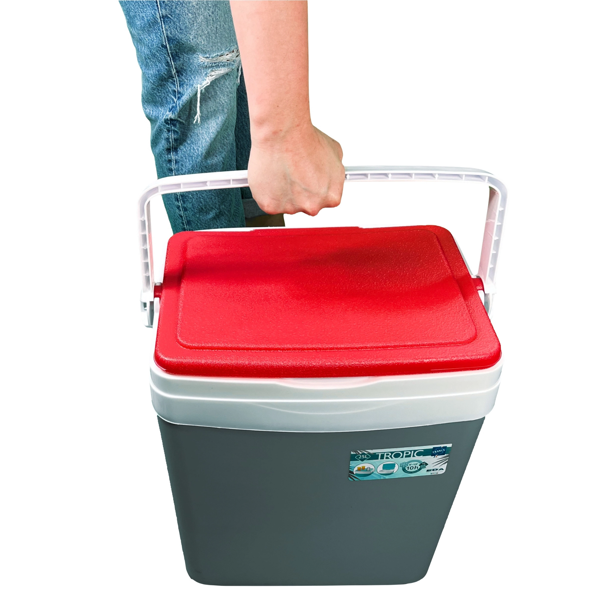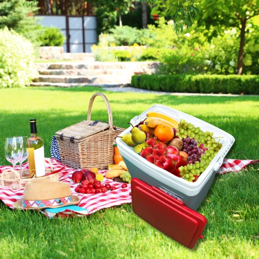 Dla najlepszego działania wkładaj wcześniej schłodzoną żywność i użyj co najmniej 2 wkładów chłodzących 650 g. Pokrywa jest profilowana i ma 4 uchwyty na kubki lub puszki, a rączka jednocześnie zabezpiecza pokrywę przed otwarciem podczas przenoszenia. Box jest bezpieczny w kontakcie z żywnością, a dzięki niskiej masie wygodnie się go nosi.