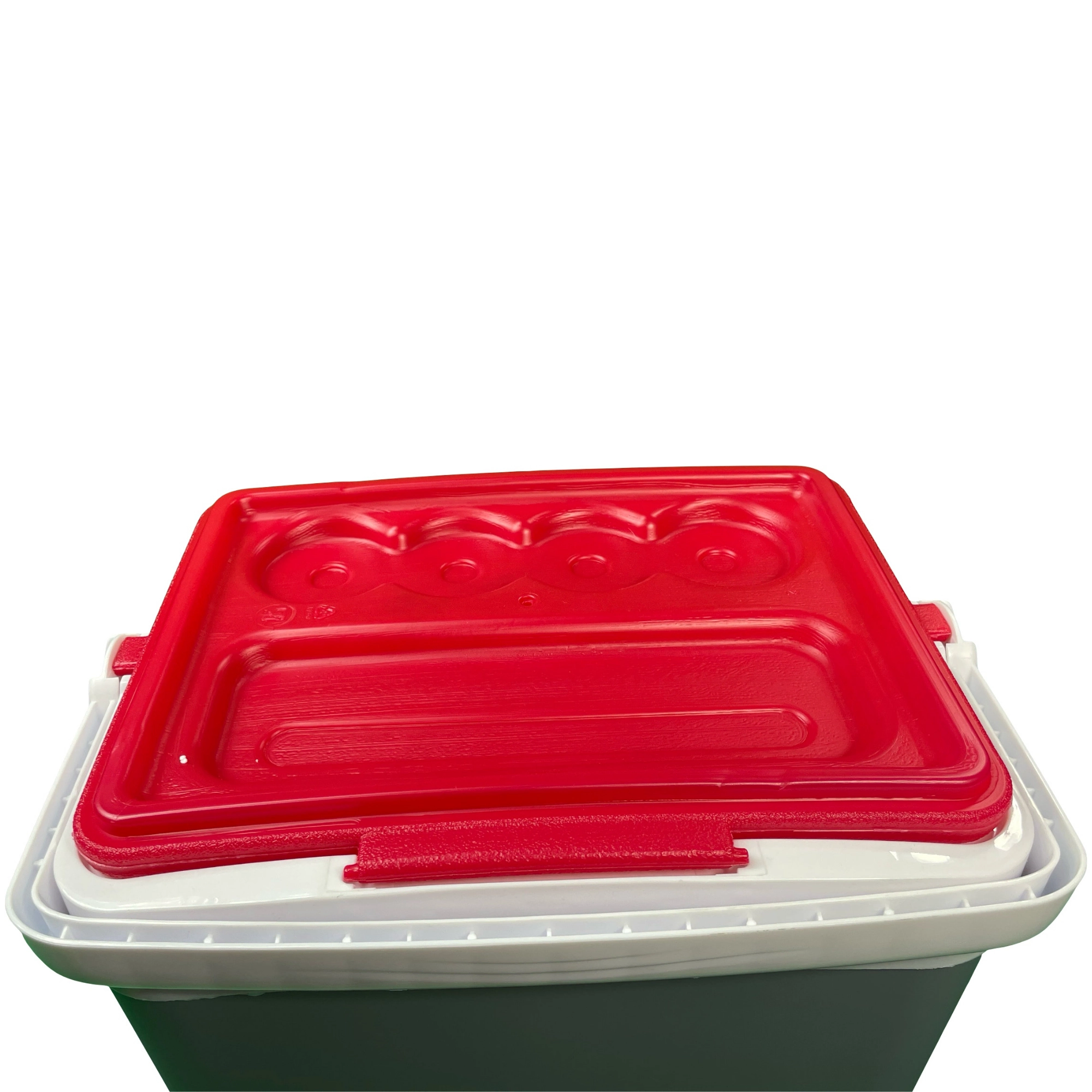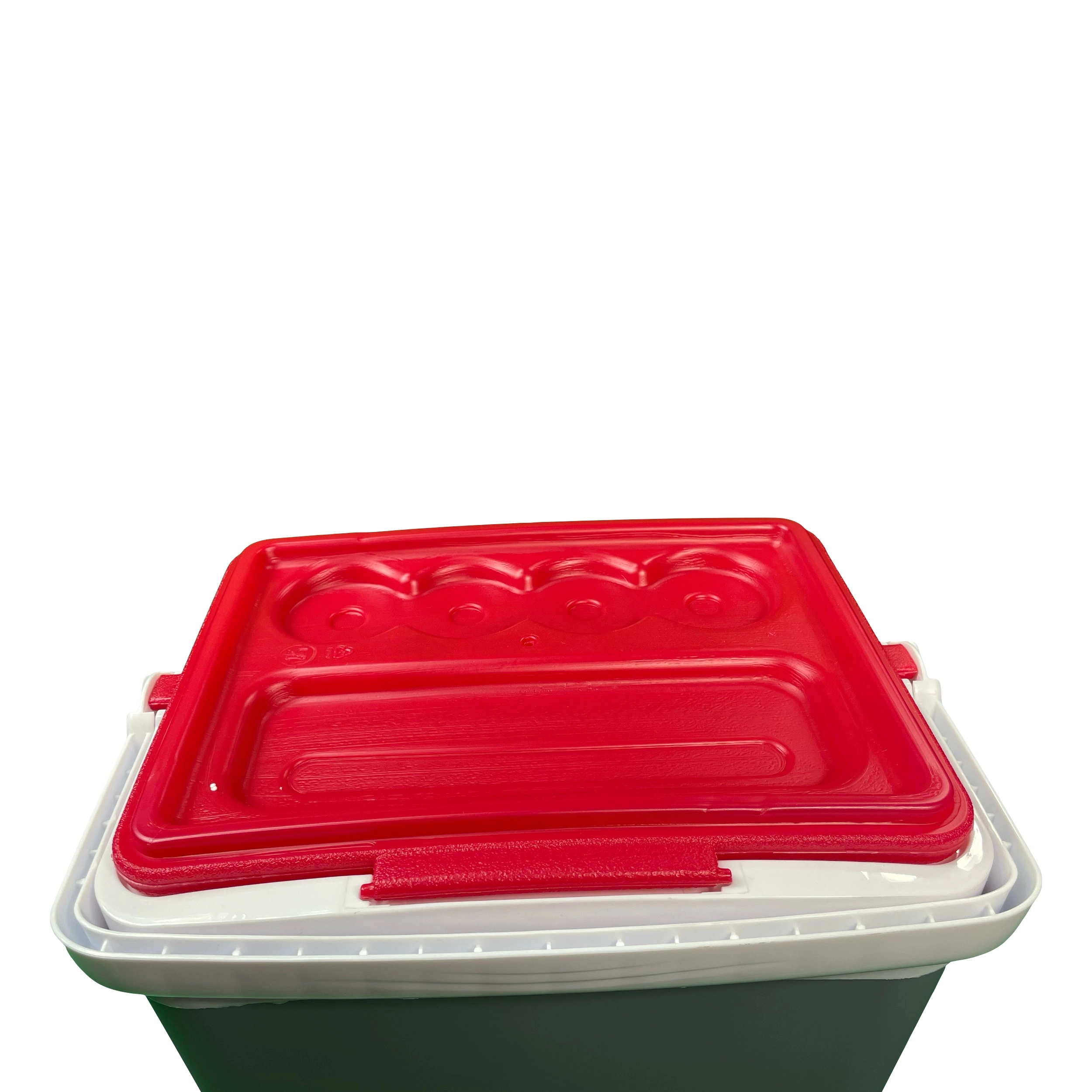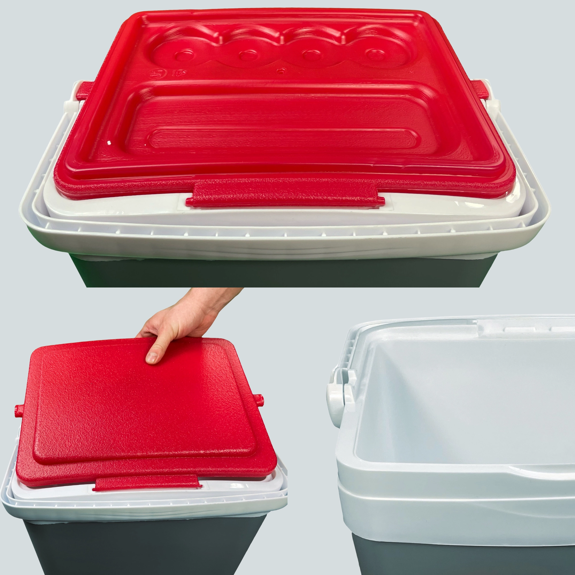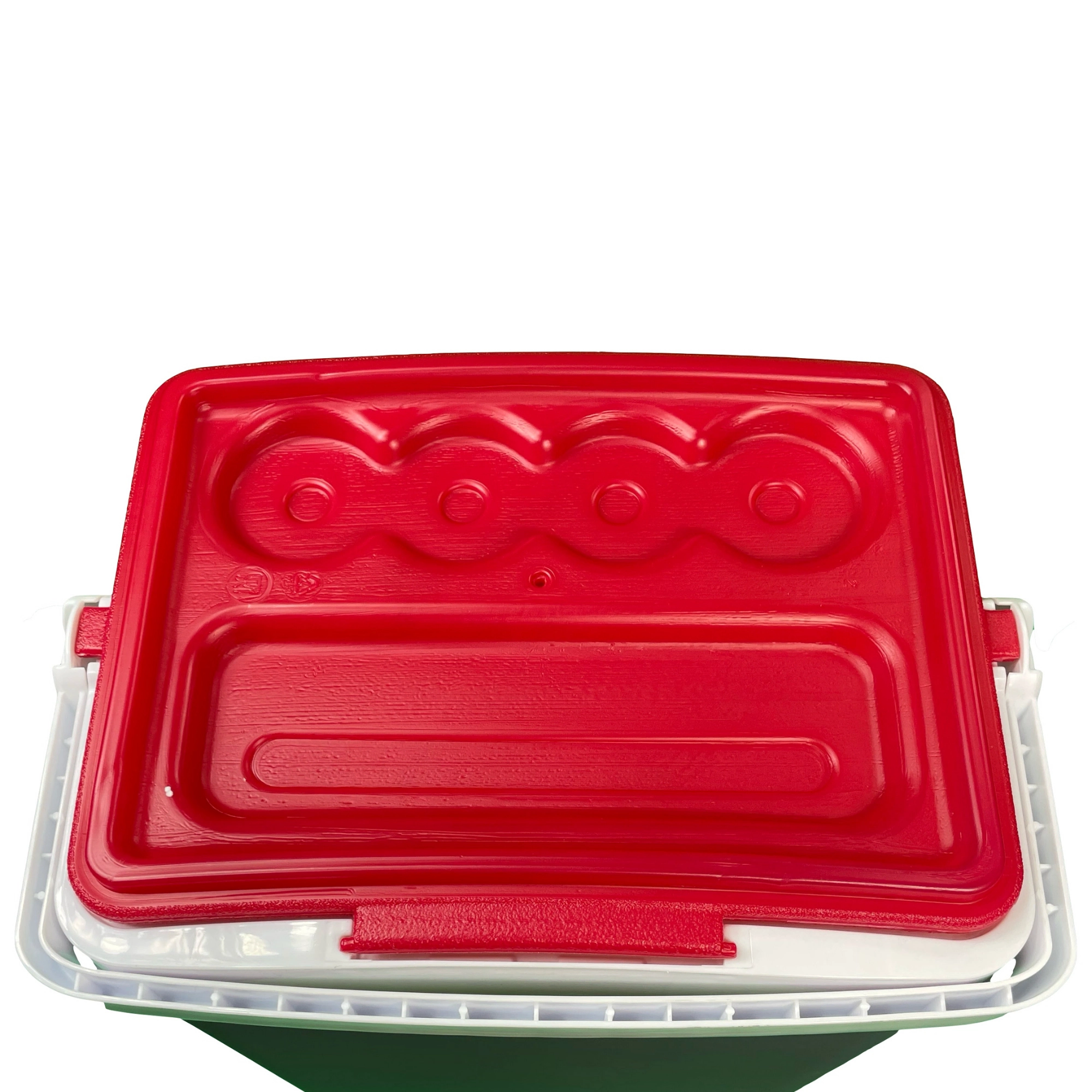 Profilowana pokrywa oferuje cztery stabilne miejsca na kubki lub puszki – idealna na relaks na plaży i piknik w parku.