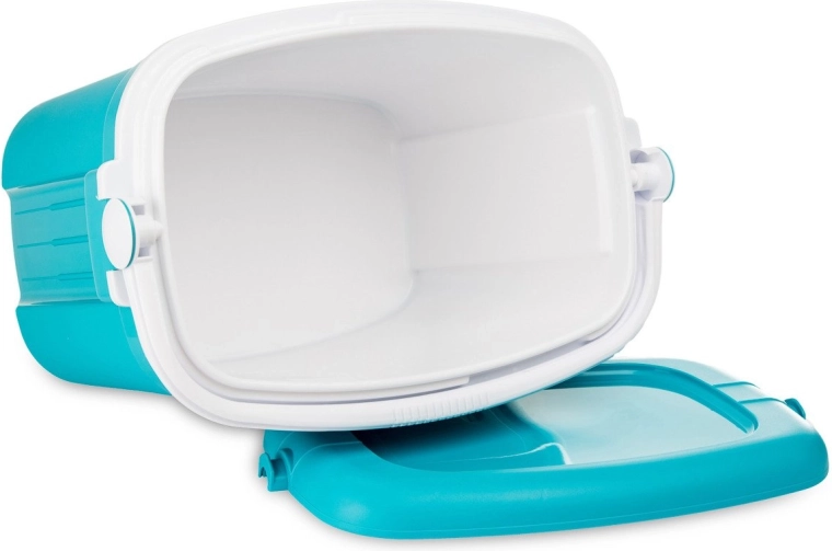 Niedeformowalny plastik PP z izolacją ze styropianu jest lekki w przenoszeniu, trwały i odpowiedni do kontaktu z żywnością. Uchwyt jednocześnie zabezpiecza pokrywę przed otwarciem.