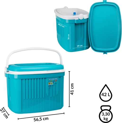 Rodzinny box chłodzący KAMAI ICEBERG jest idealny na piknik, nad wodę i na wakacje. Jest wyjątkowo lekki (3,4 kg), a przy tym wykonany z twardego, nieodkształcalnego plastiku z wysokiej jakości izolacją pokrywy i korpusu, co zapewnia stabilnie niską temperaturę nawet w upalne dni. Łatwy w przenoszeniu i czyszczeniu, bezpieczny do kontaktu z żywnością, bez trudu chłodzi duże zakupy lub przekąski dla całej rodziny.