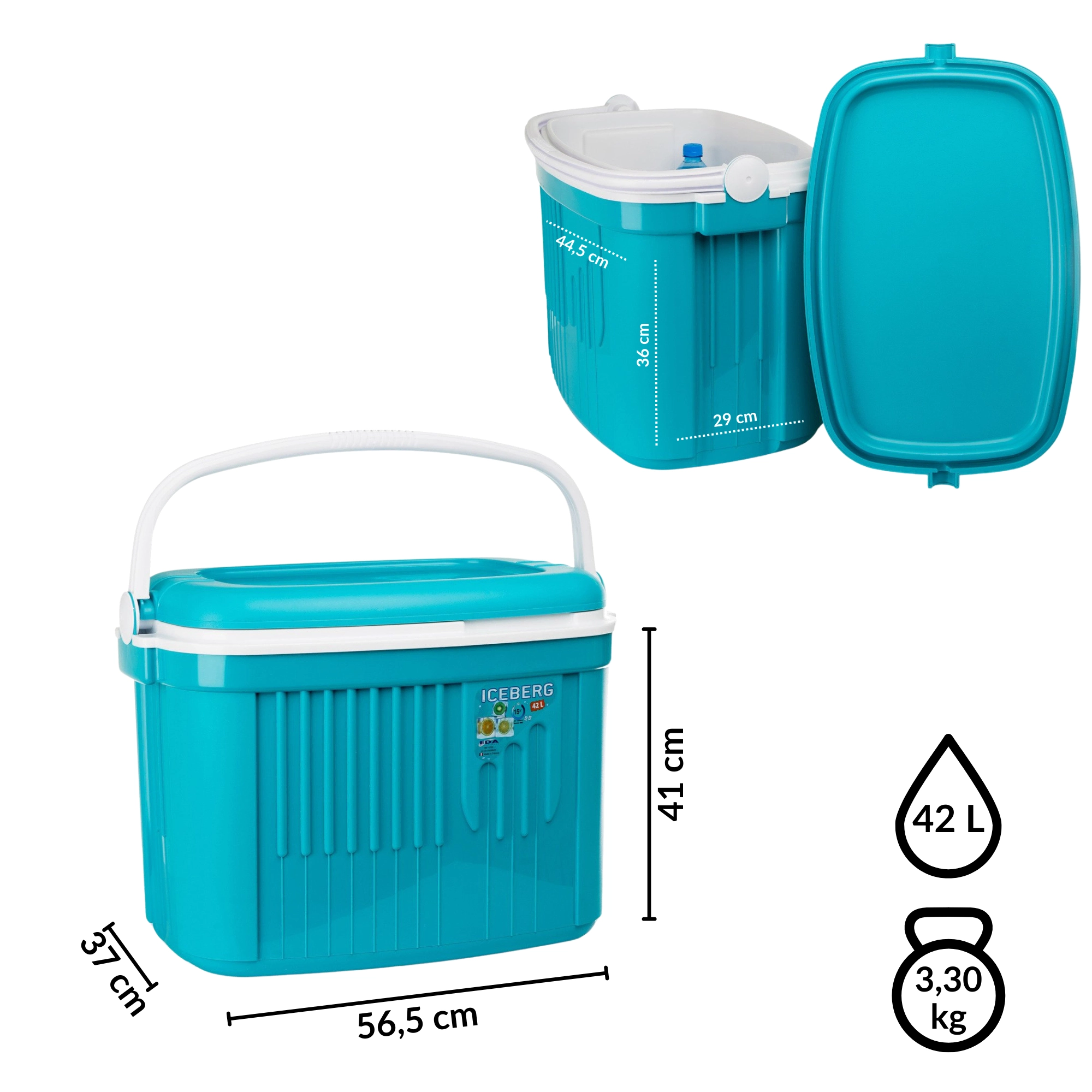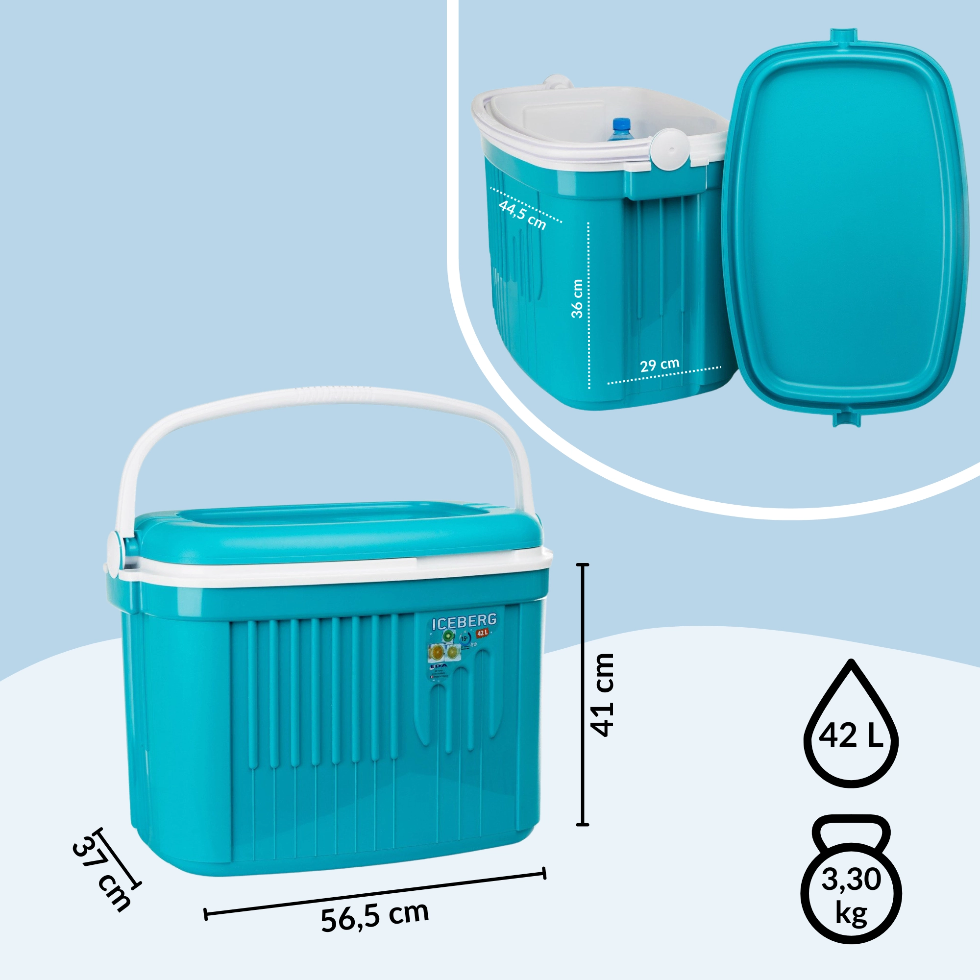 Turystyczna torba chłodząca 42 l KAMAI ICEBERG, turkusowa z białą rączką
