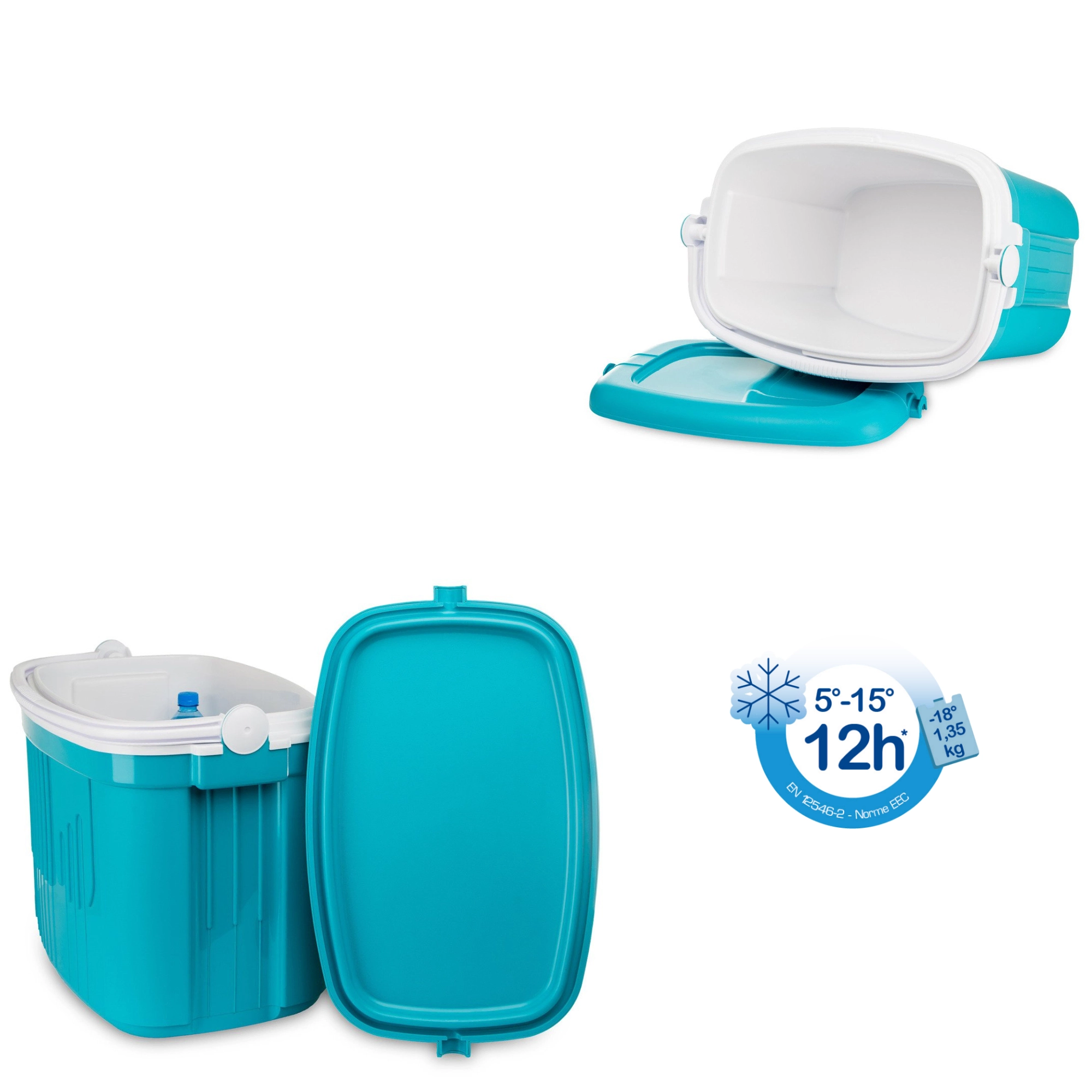 Dla maksymalnej skuteczności chłodzenia używaj wcześniej schłodzonej żywności oraz co najmniej 2 wkładów chłodzących 650 g. Zintegrowany uchwyt działa jako blokada pokrywy, dzięki czemu box nie otworzy się w trakcie transportu.