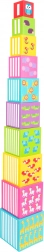 Wesołe ilustracje zwierzątek i wyraziste kolory zachęcają dzieci do zabawy, która jednocześnie uczy. Każdy klocek jest oznaczony liczbą, więc dzieci łatwo poćwiczą liczenie od 1 do 10, porównywanie wielkości i percepcję przestrzenną podczas budowania wież oraz wkładania klocków jeden w drugi.