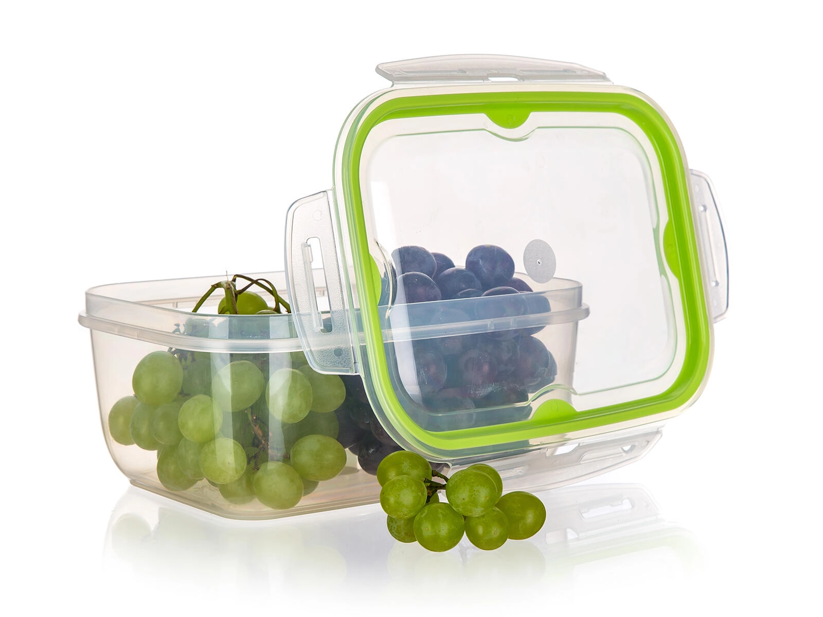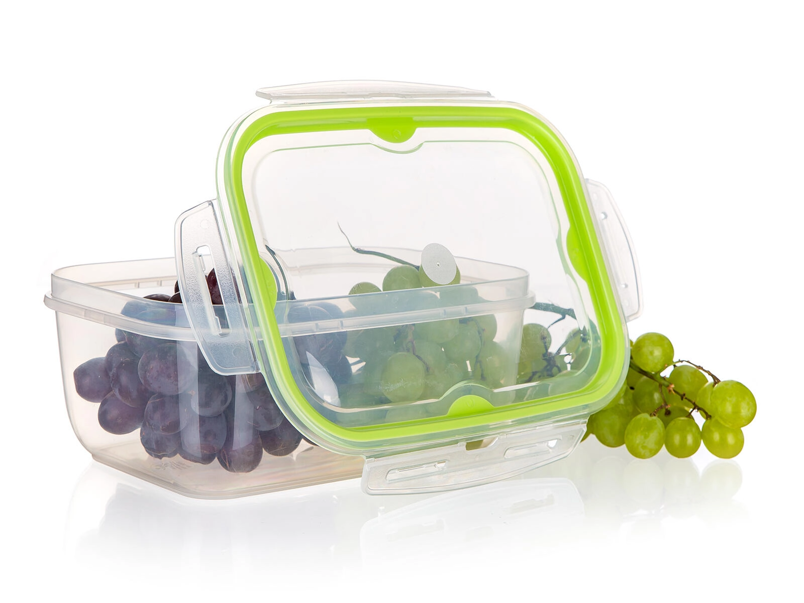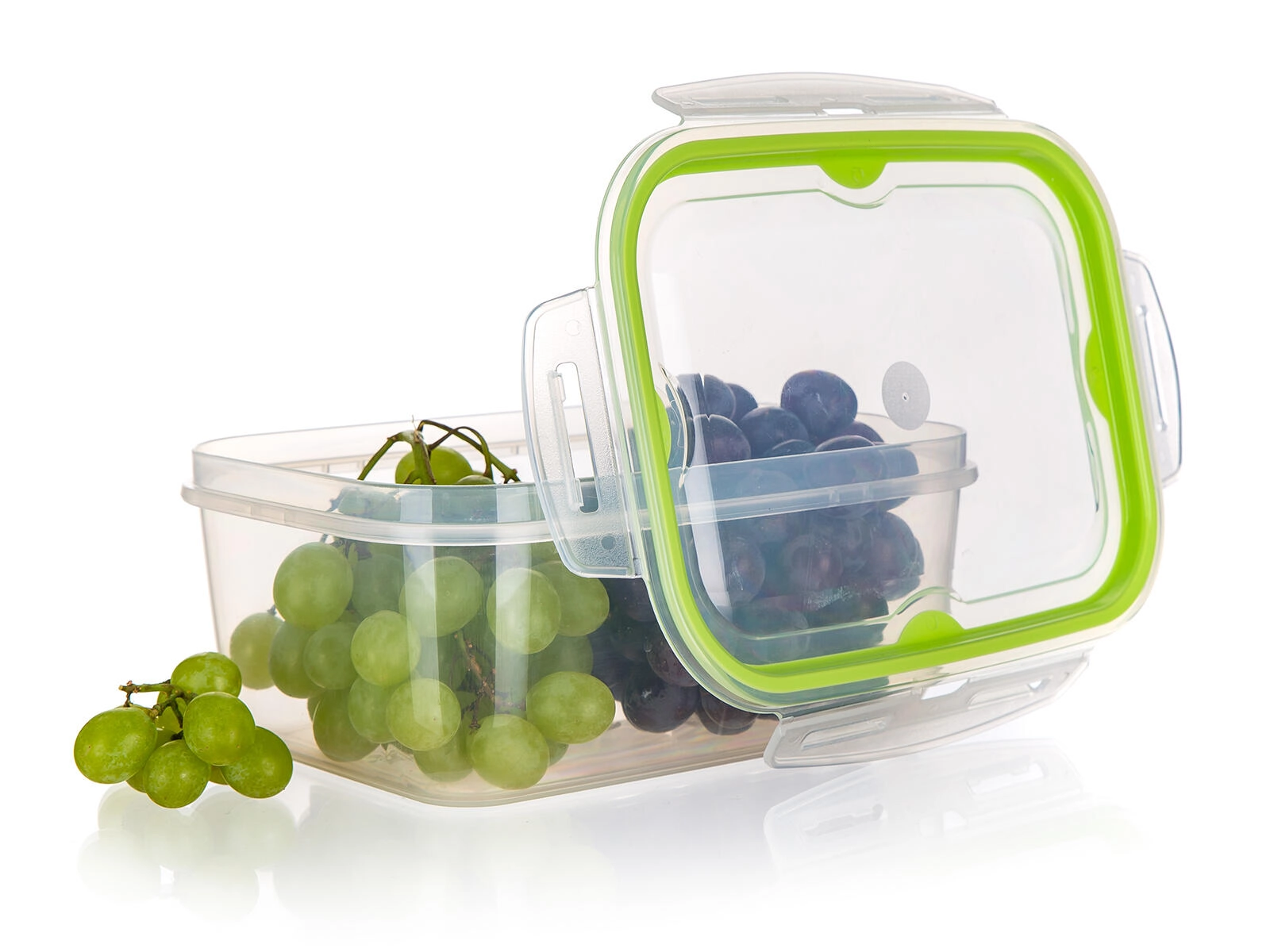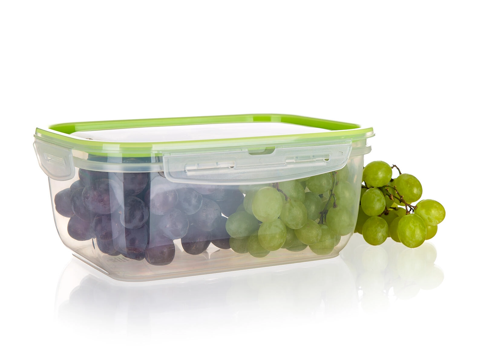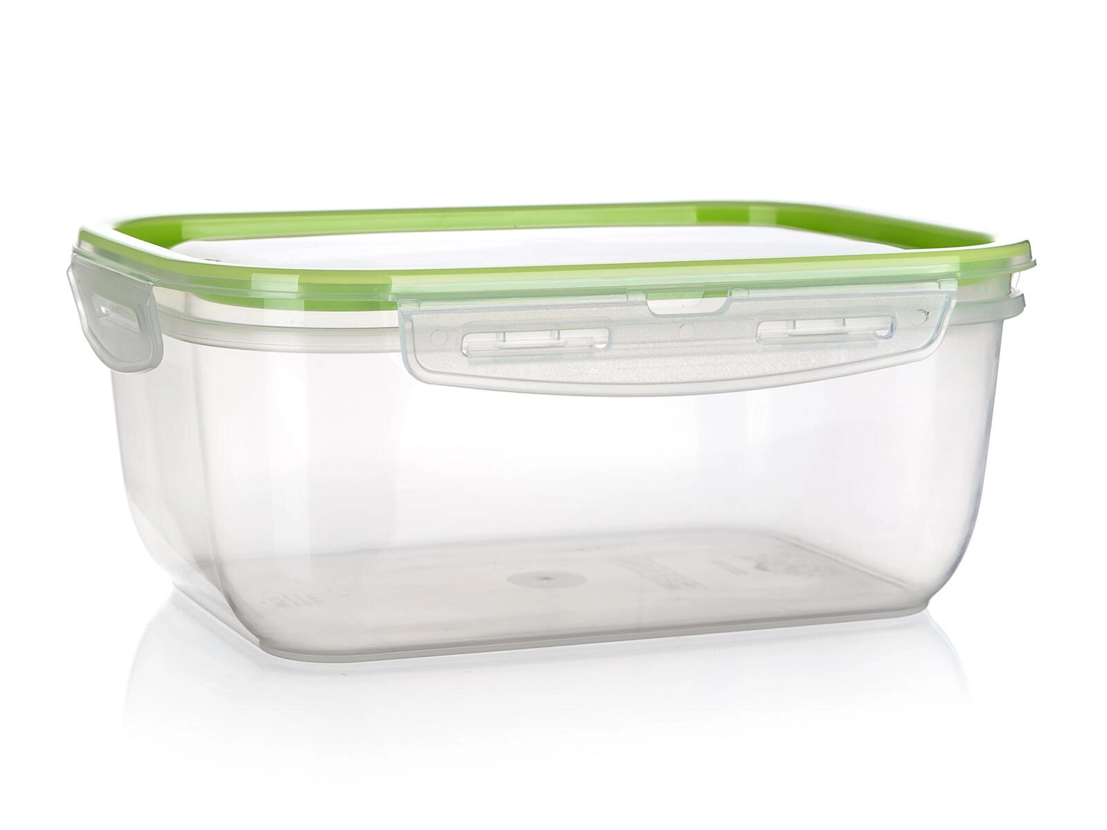 Dzięki transparentnemu korpusowi zawsze widzisz, co jest w środku, a prostokątny kształt ułatwia sztaplowanie i oszczędność miejsca w lodówce i zamrażarce. Pojemnik wykonano z wytrzymałego tworzywa odpowiedniego do codziennego użytku i jest dostępny z kolorową uszczelką (zielona, turkusowa, czerwona, czarna), aby pasował do Twojej kuchni.