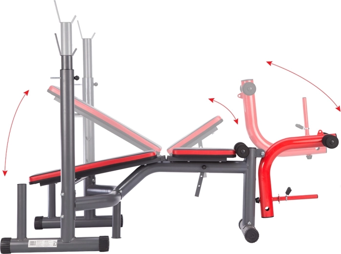 Ławka umożliwia szeroki zakres ćwiczeń: wyciskanie na ławce, wyciskania siedząc, ściąganie drążka z górnego wyciągu, uginanie bicepsów na modlitewniku, prostowanie i uginanie nóg. Dzięki szybkiemu systemowi zmiany kąta w mgnieniu oka dopasujesz pozycję do swojej sylwetki i celu treningowego.