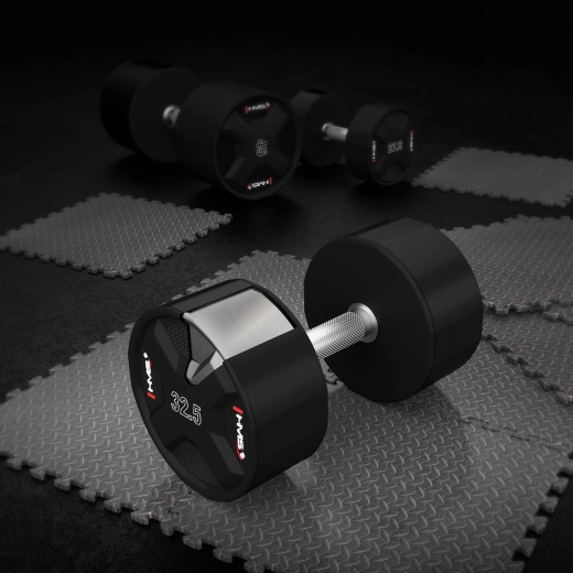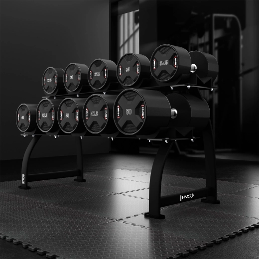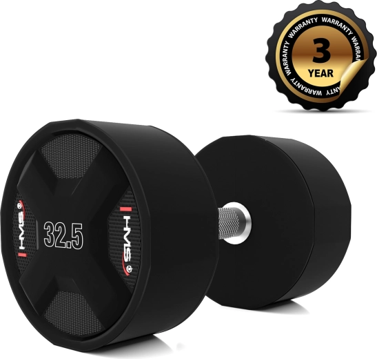 Hantel jednoręczny HMS 32,5 kg został zaprojektowany do intensywnego treningu siłowego w siłowniach komercyjnych i domowych. Stalowy rdzeń pokryty odlewaniem poliuretanem (CPU) gwarantuje wyjątkową odporność na uderzenia i upadki oraz elegancki wygląd, który długo utrzymuje się bez uszkodzeń i bez zapachu.