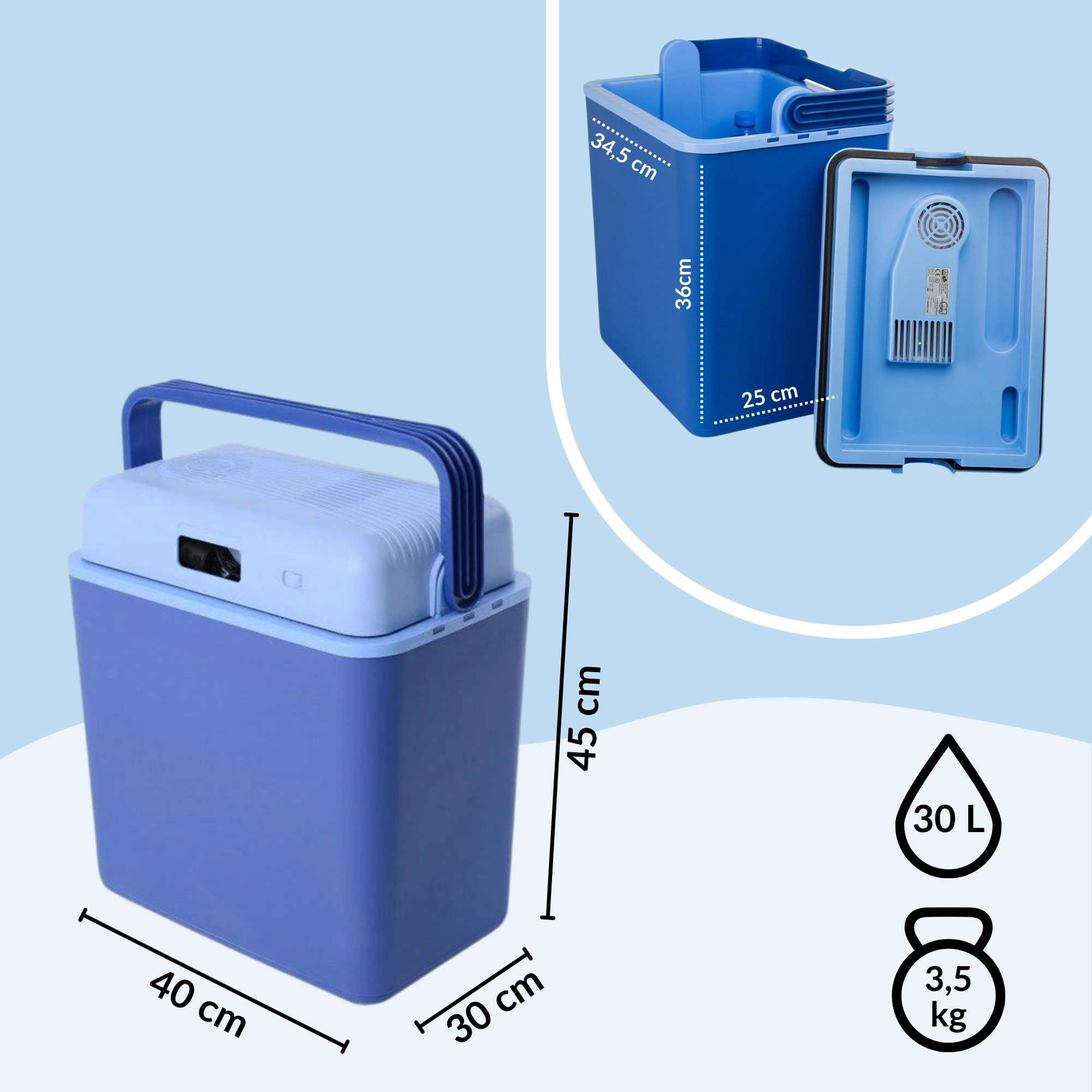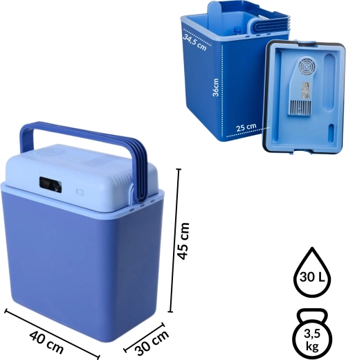 Praktyczna przenośna lodówka samochodowa o pojemności 30 l zasilana z gniazda 12 V w aucie utrzyma Twoje napoje i żywność świeże w podróży. Wykorzystuje moduł Peltiera do wydajnego chłodzenia bez szkodliwych chemikaliów, oferuje przestronne wnętrze na butelki 1,5 l w pozycji pionowej oraz ma solidną, wytrzymałą konstrukcję z blokowanym uchwytem i zintegrowanym wentylatorem dla równomiernej cyrkulacji powietrza.