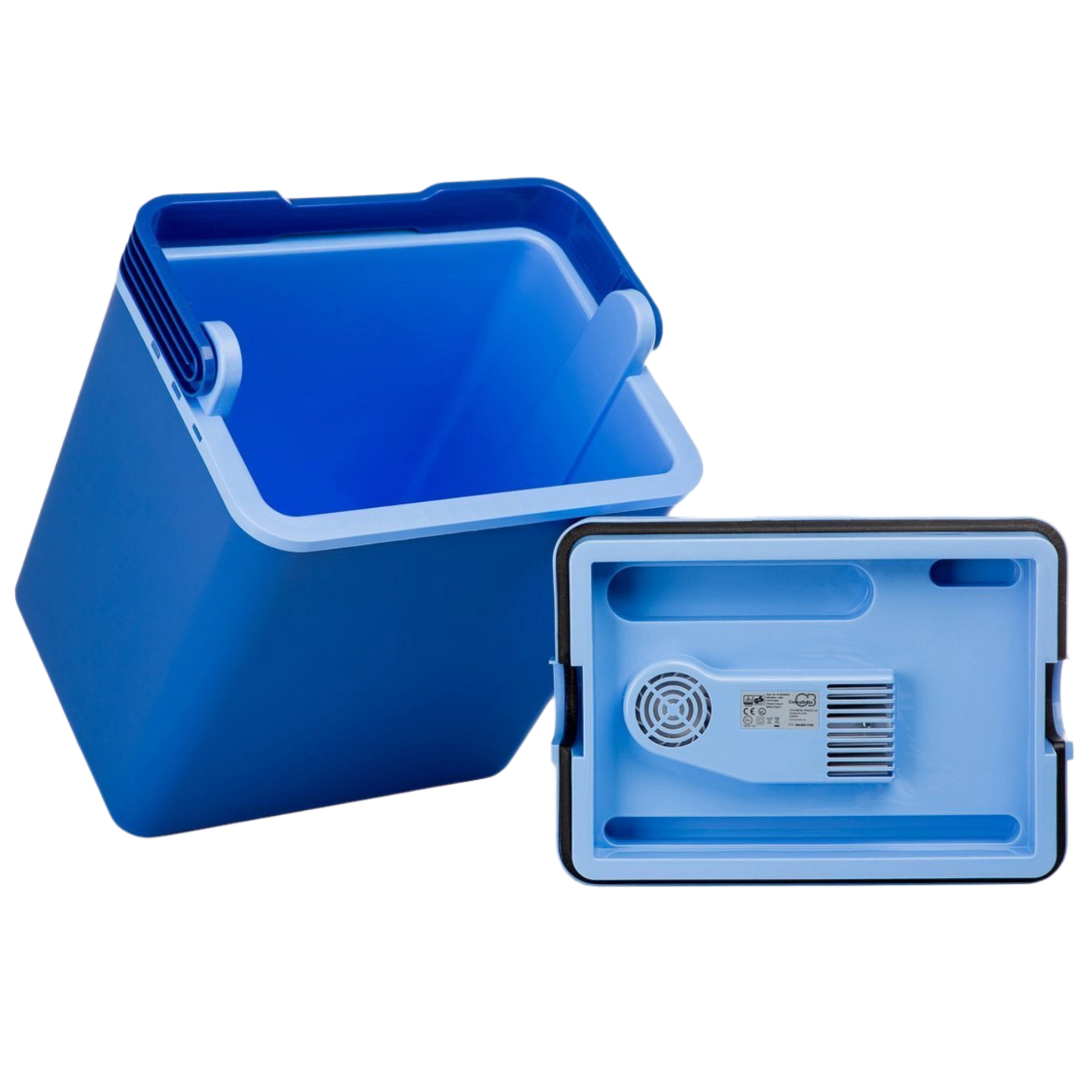 Zintegrowany system Peltiera uzupełniony wentylatorem zapewnia równomierny przepływ powietrza i stabilne chłodzenie bez użycia czynników chłodniczych. Dzięki pojemności 30 l łatwo przechowasz jedzenie i napoje dla całej załogi, a butelki 1,5 l ustawisz pionowo. Blokowany uchwyt zwiększa bezpieczeństwo transportu.
