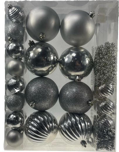 - 32 sztuki w dopasowanej srebrnej palecie dla kompletnego wystroju choinki.