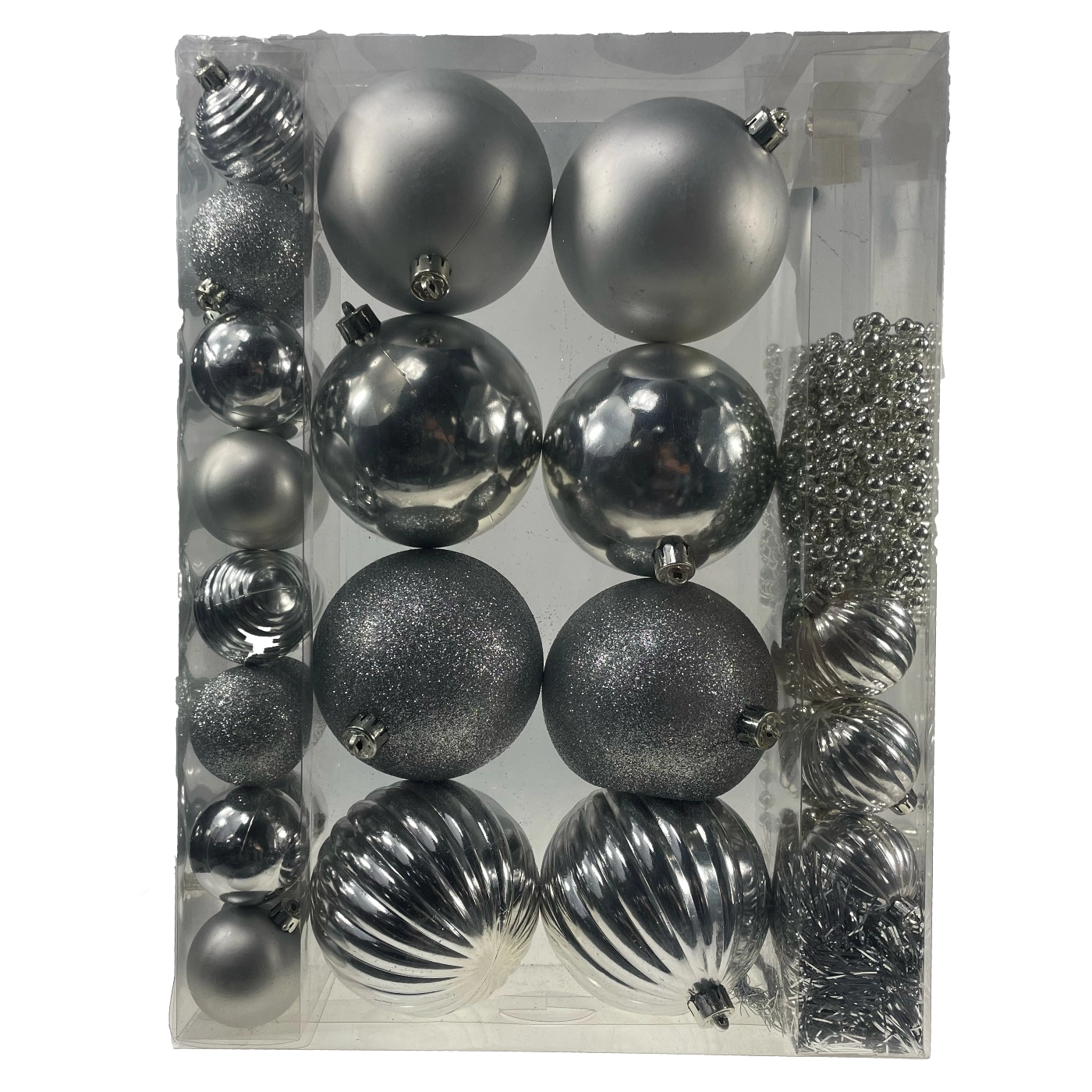Stwórz w domu idealną świąteczną aranżację ze stylowym zestawem srebrnych ozdób. Różnorodne kształty i powierzchnie (błyszczące, matowe i brokatowe) dodają choince głębi i elegancji, a jednolity kolor zapewnia spójny i nowoczesny wygląd. Ozdoby są lekkie, trwałe i łatwe do łączenia z innymi dekoracjami.