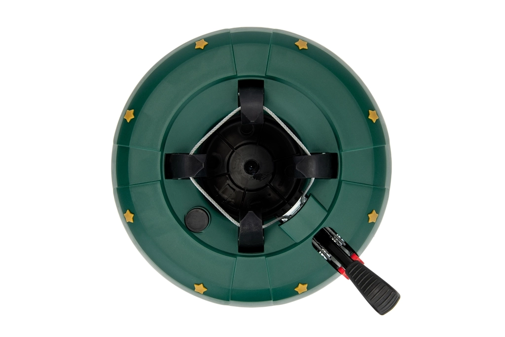 Kamai Start 3 to niezawodny stojak do żywych choinek o wysokości do 3 metrów. Szeroka podstawa, waga 5 kg oraz cztery samozaciskowe haki z mocną stalową linką pewnie obejmują pień (3–13 cm) i utrzymują go dokładnie w pionie. Zintegrowany zbiornik na wodę o pojemności 3 litrów z pływakowym wskaźnikiem poziomu pomaga dłużej zachować świeżość igliwia.